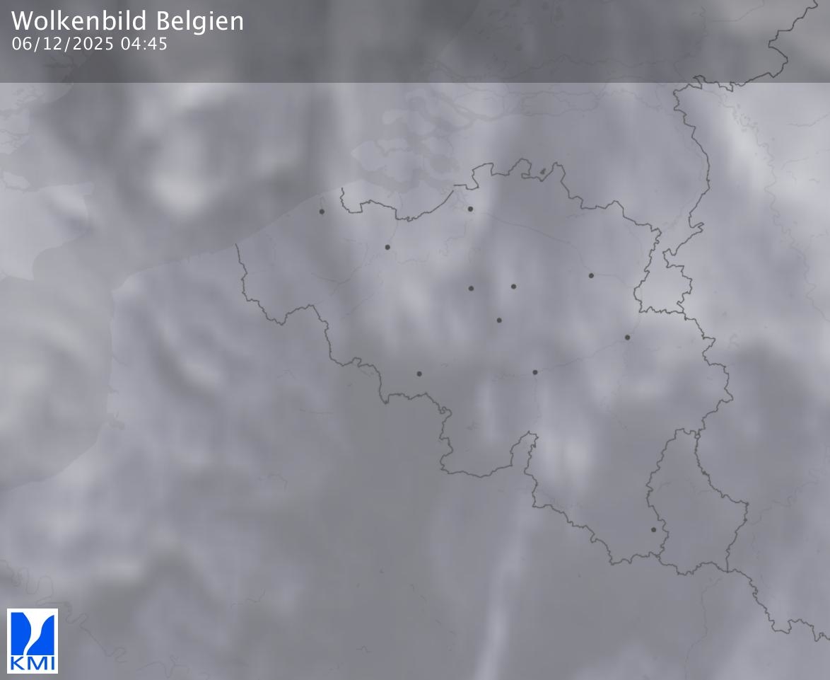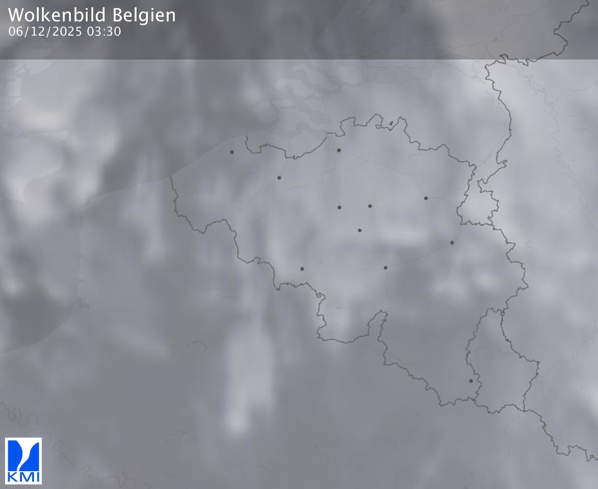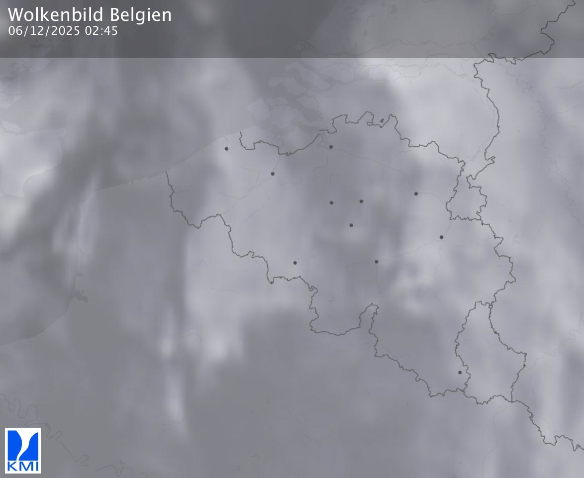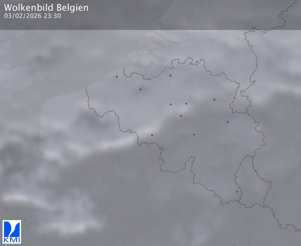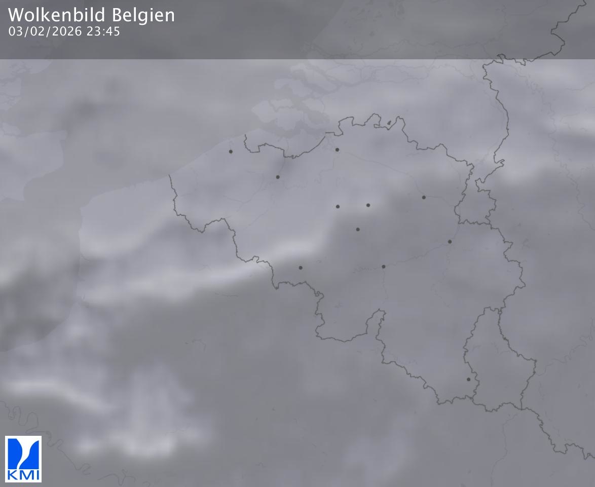 Das Wolkenbild Belgiens ist eine Kombination der sichtbaren und Infrarotkanäle des Satelliten.