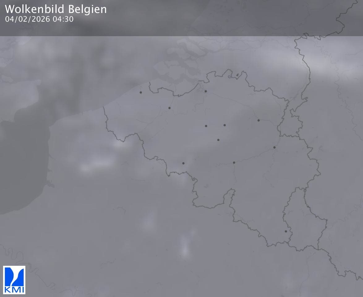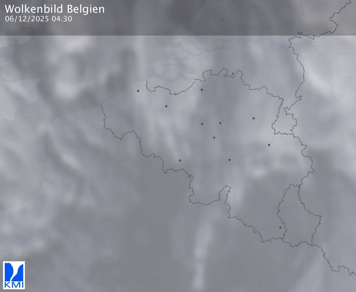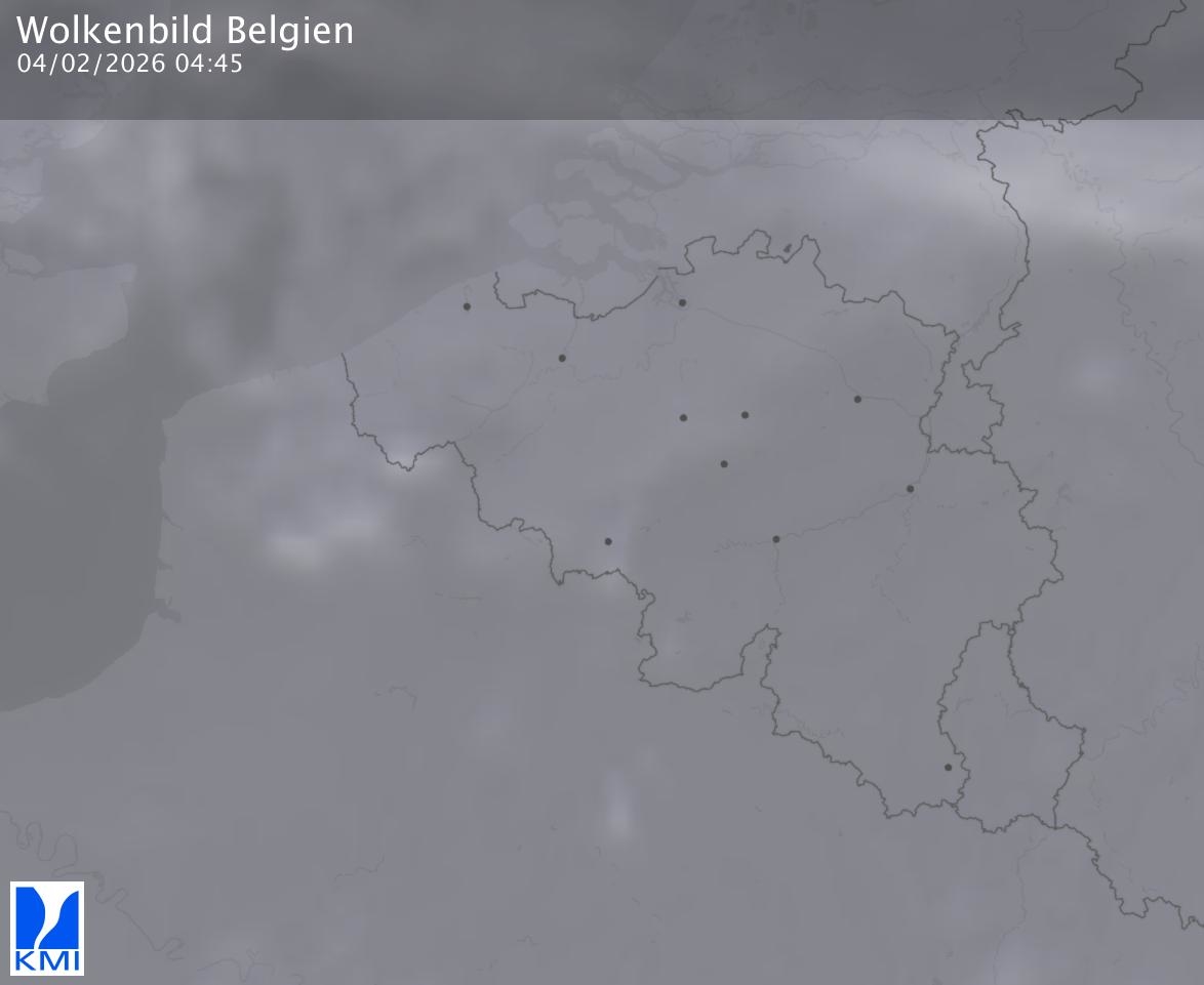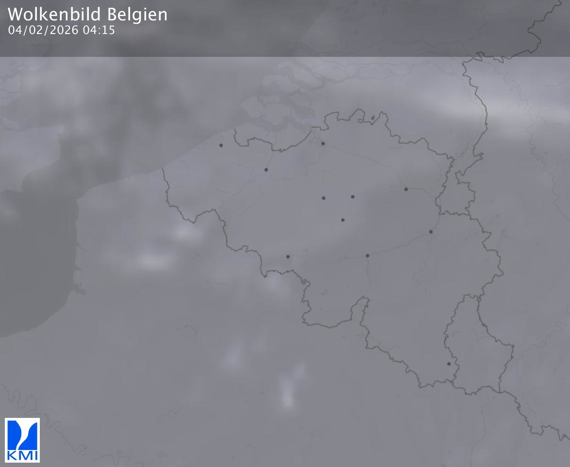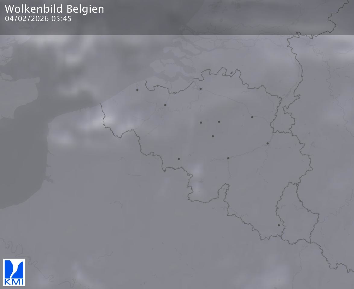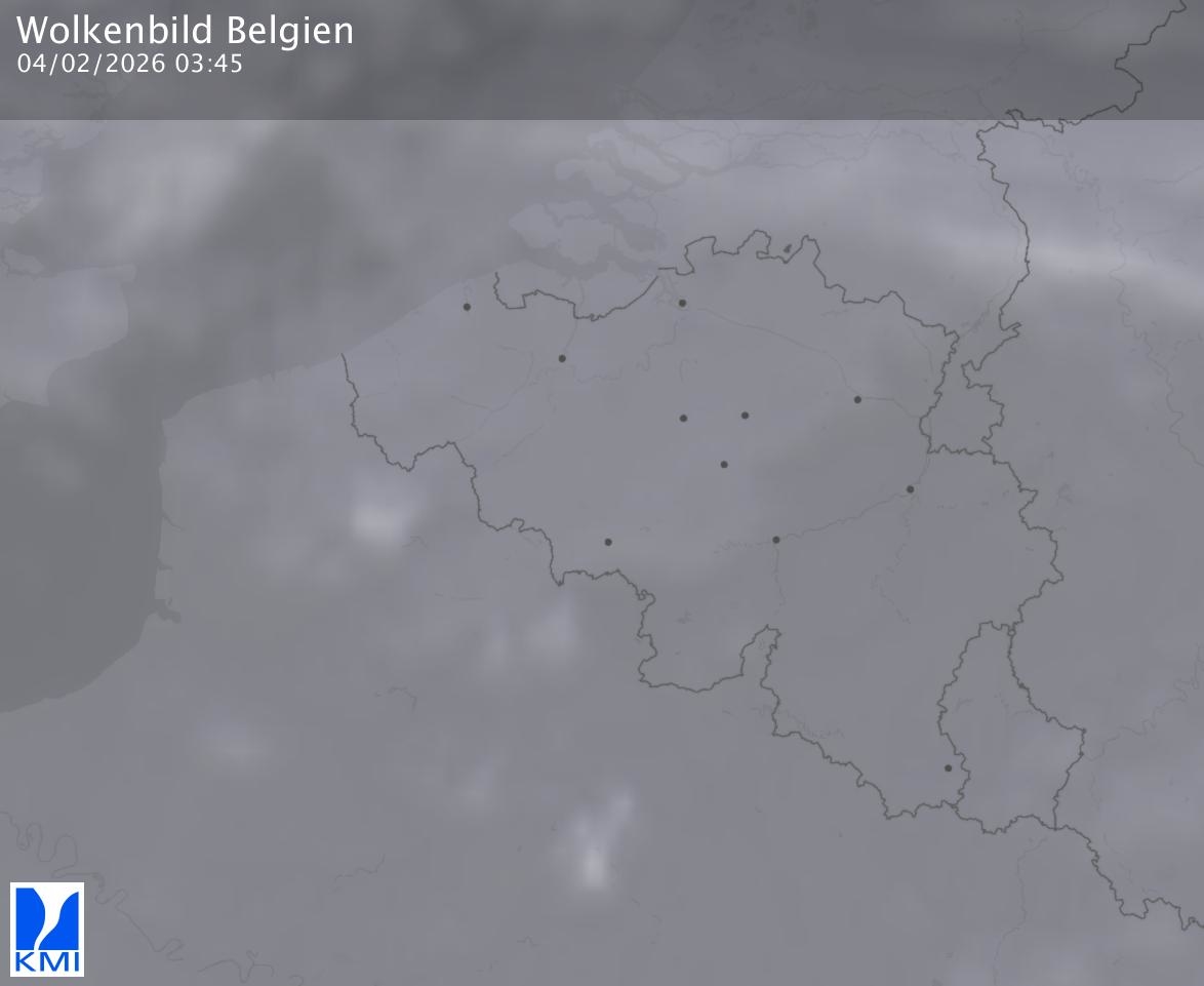 Das Wolkenbild Belgiens ist eine Kombination der sichtbaren und Infrarotkanäle des Satelliten.