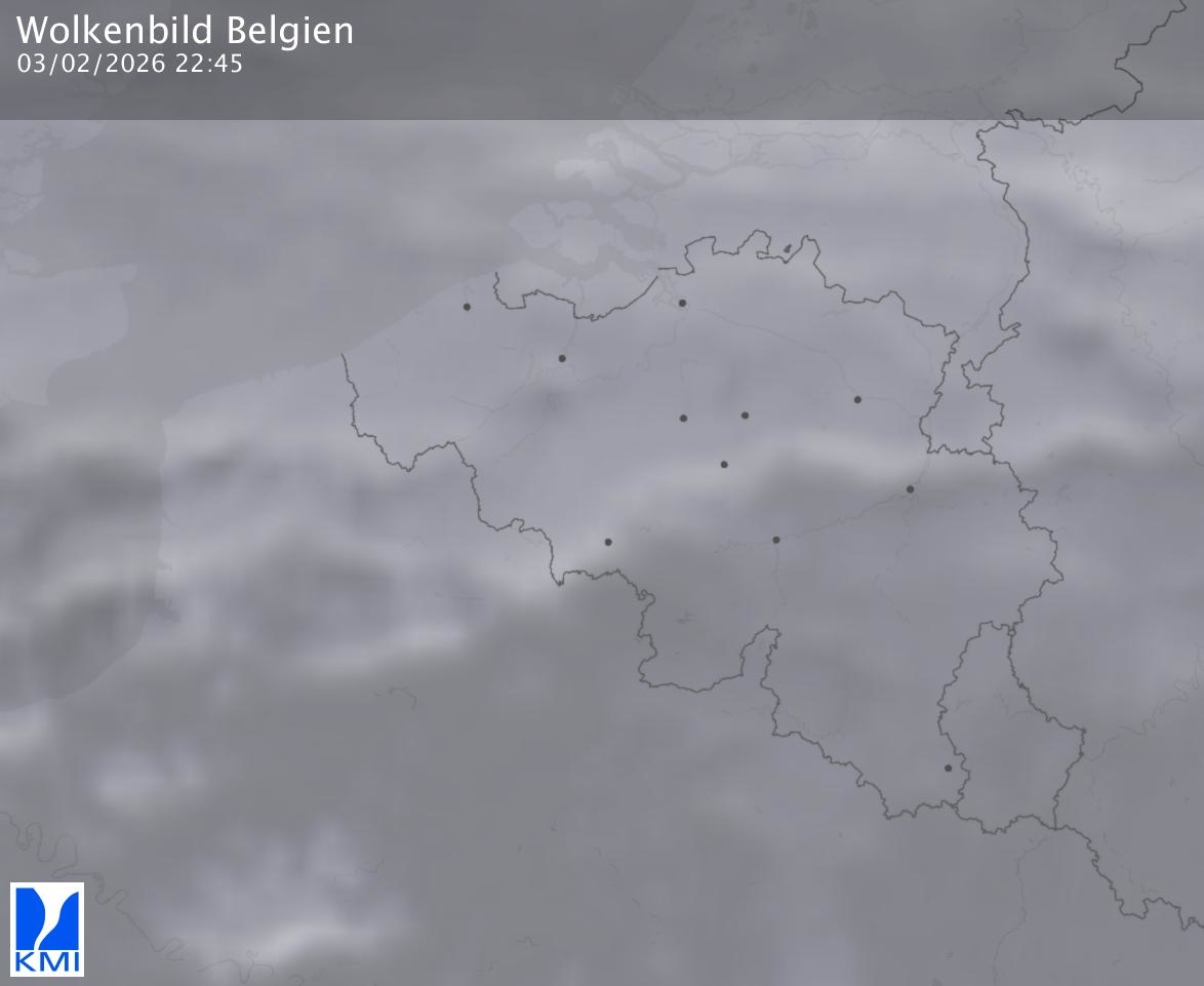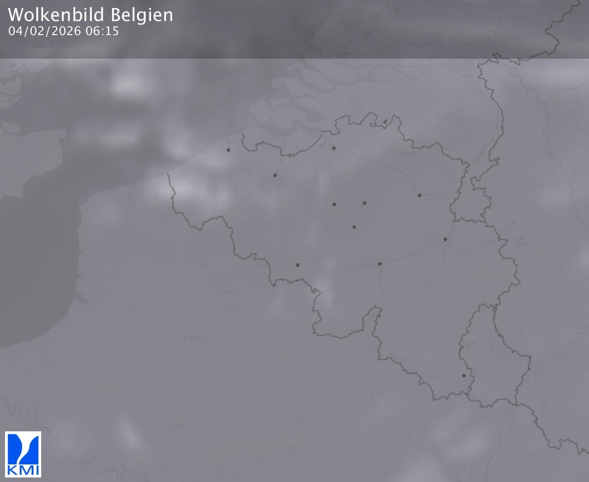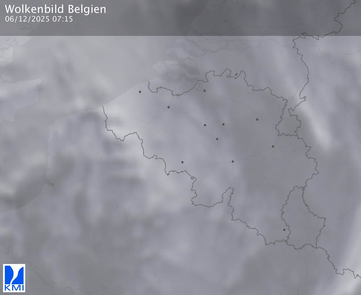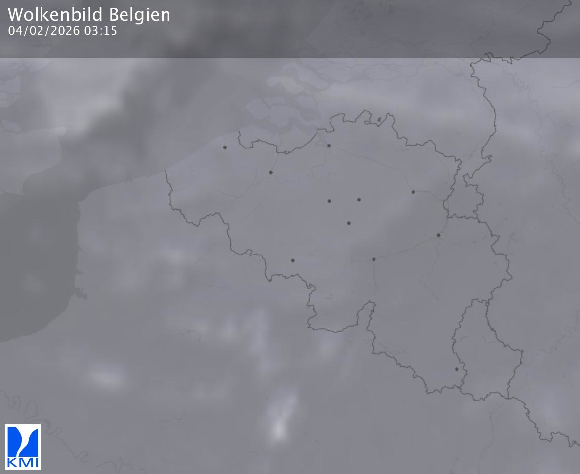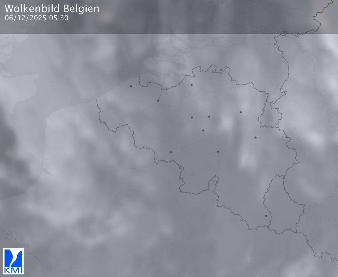 Das Wolkenbild Belgiens ist eine Kombination der sichtbaren und Infrarotkanäle des Satelliten.
