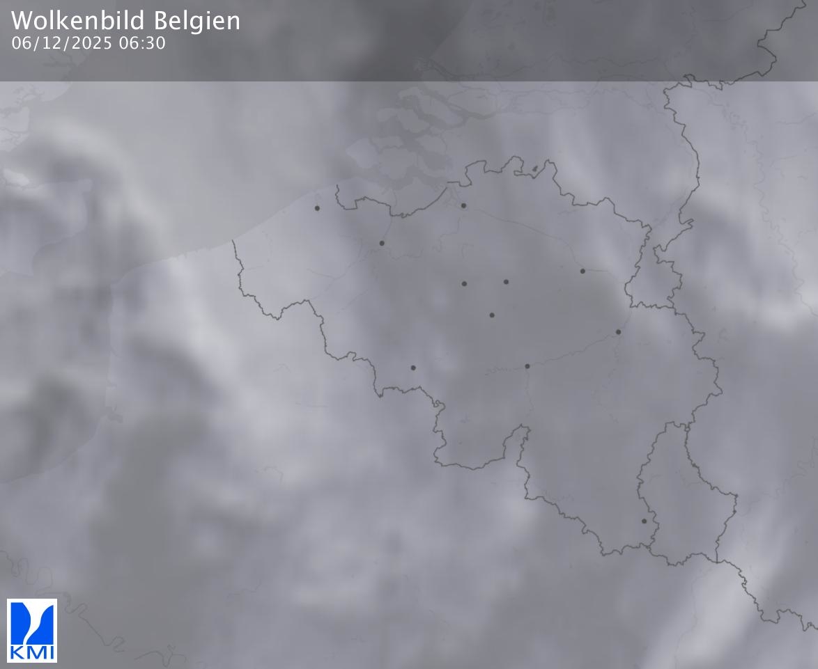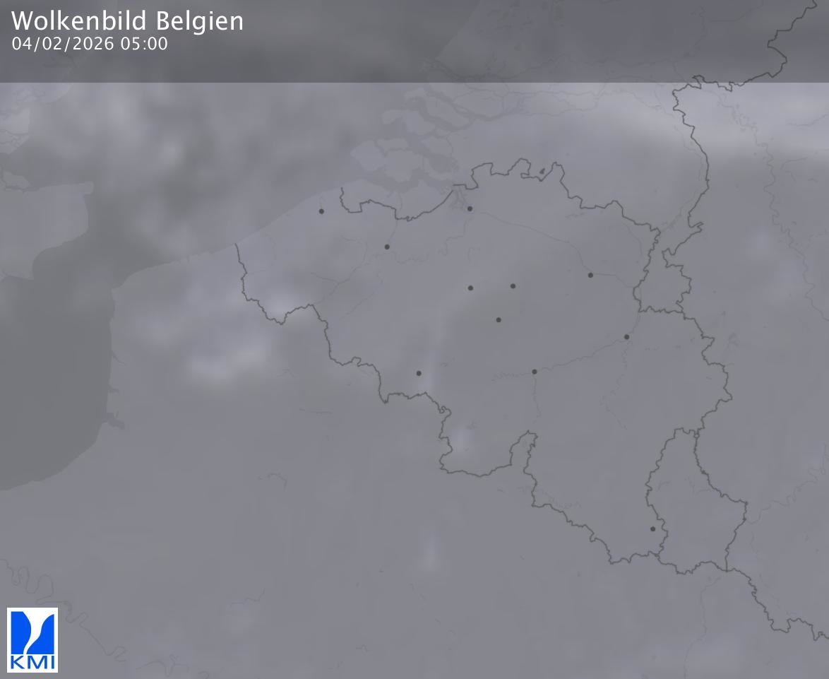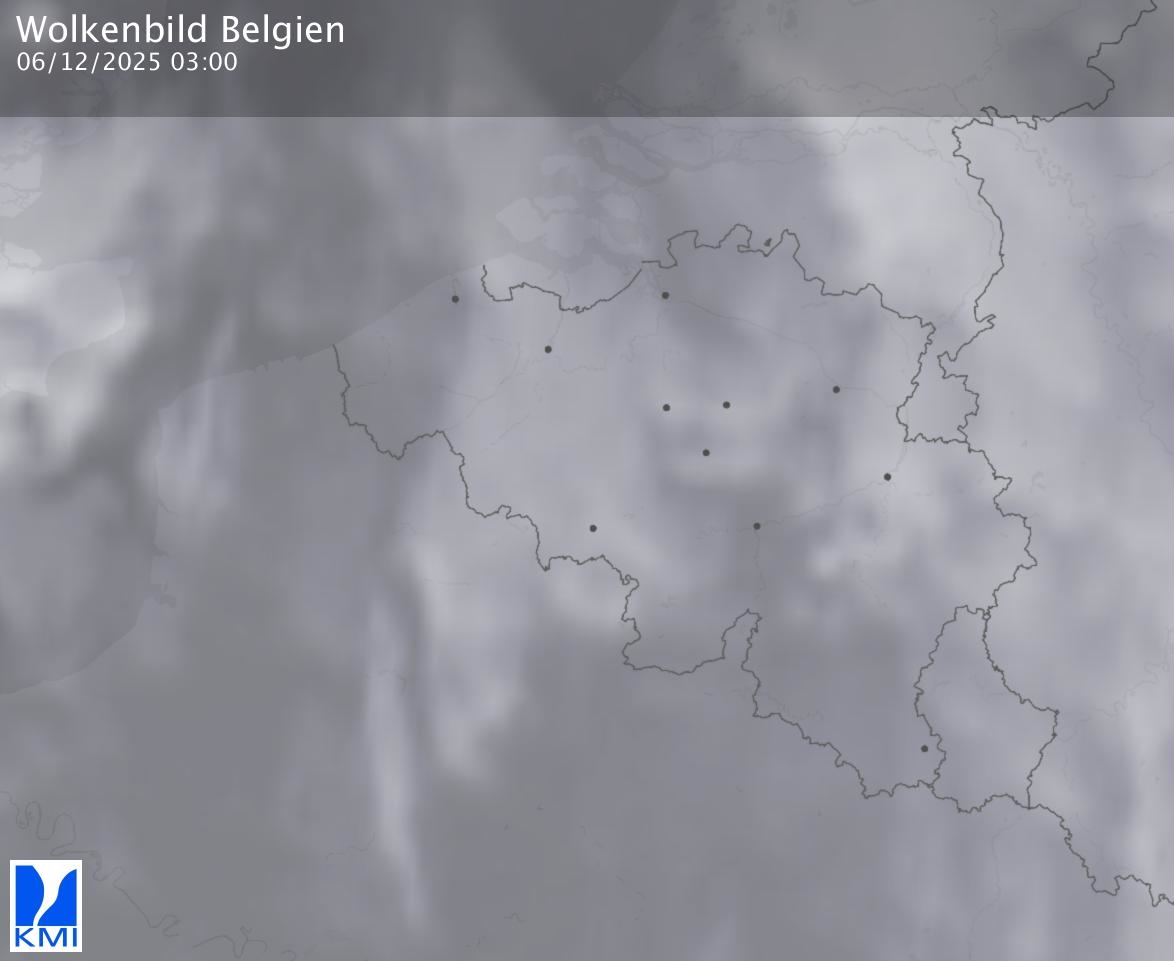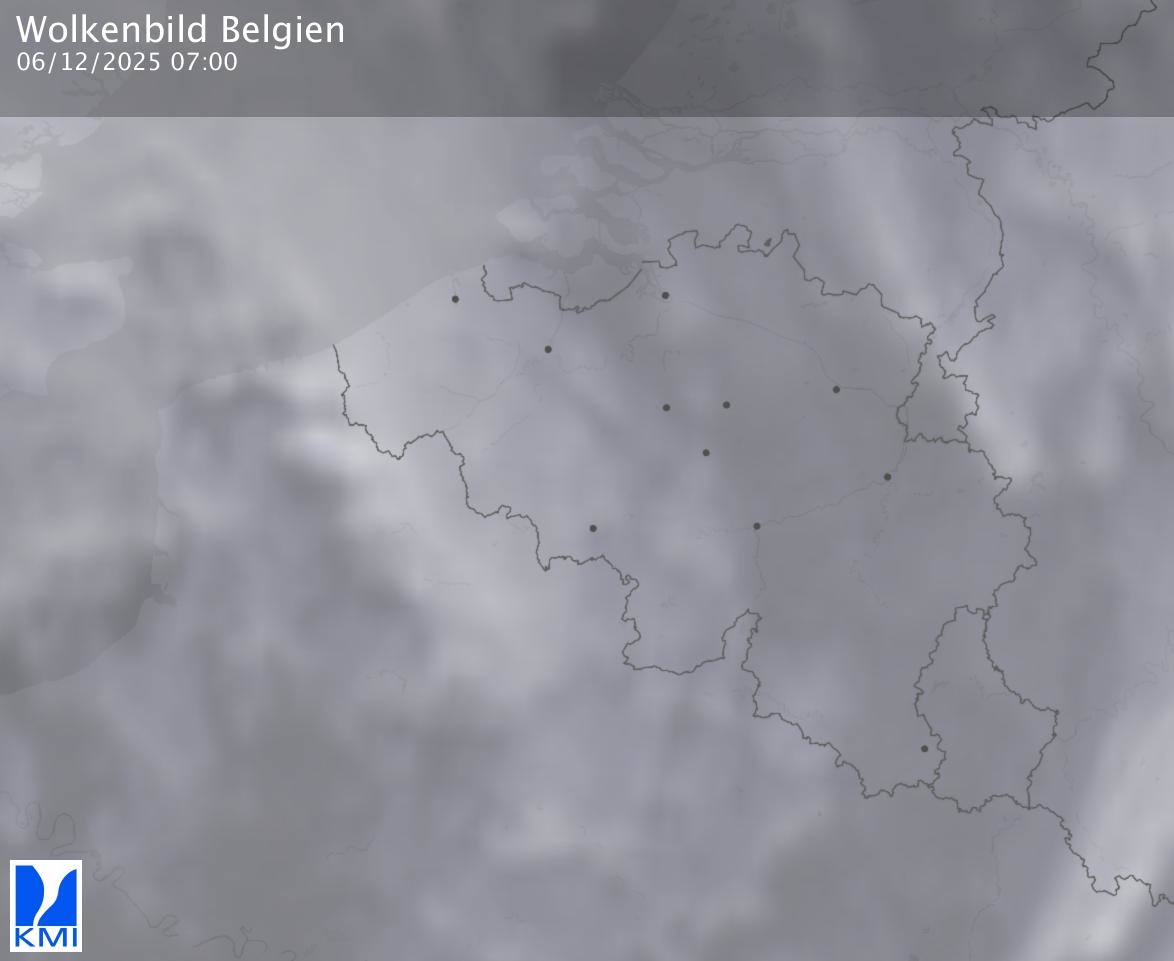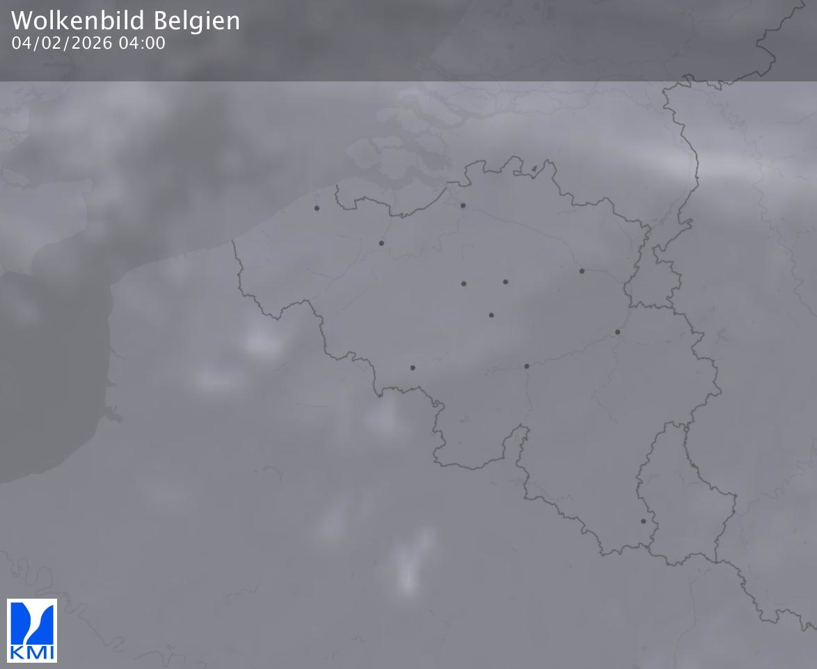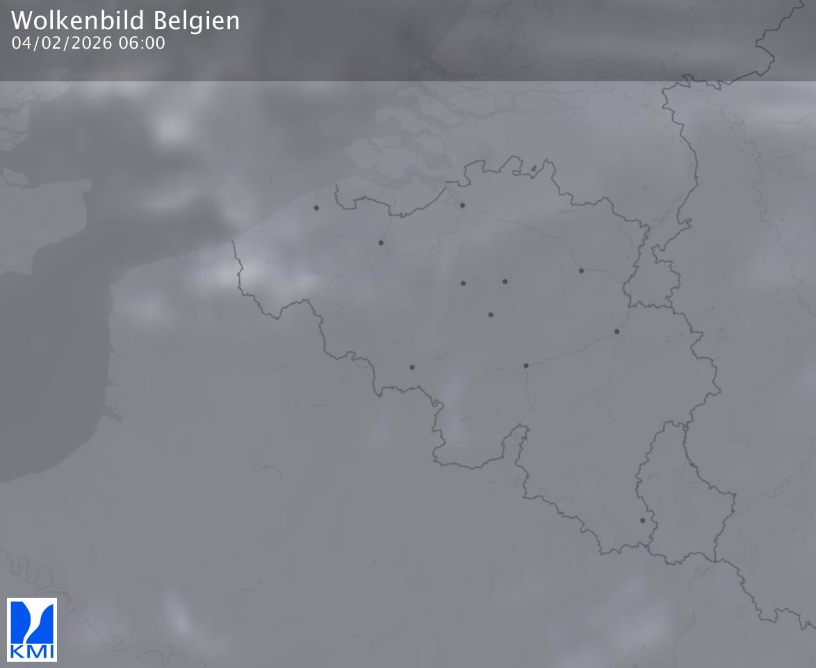 Das Wolkenbild Belgiens ist eine Kombination der sichtbaren und Infrarotkanäle des Satelliten.