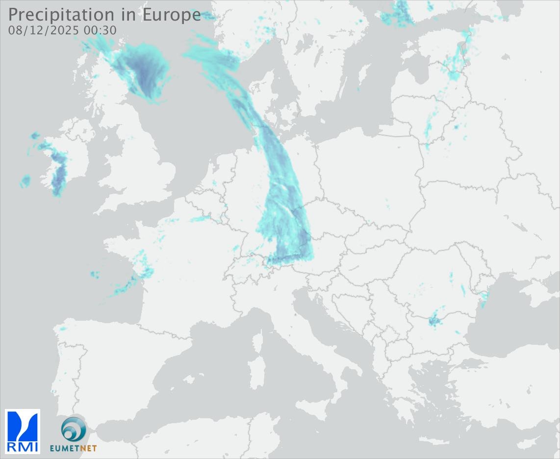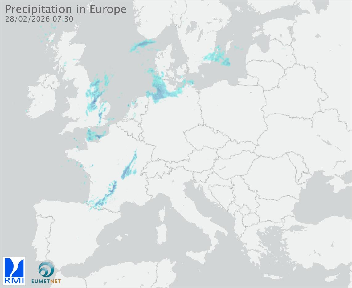 This animation shows the fallen precipitation observed by the radars of the European members of the OPERA program of Eumetnet.