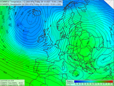 Warmere regio duidelijk zichtbaar op de hoogtekaart ten zuiden van Sicilië. Bron: ECMWF.