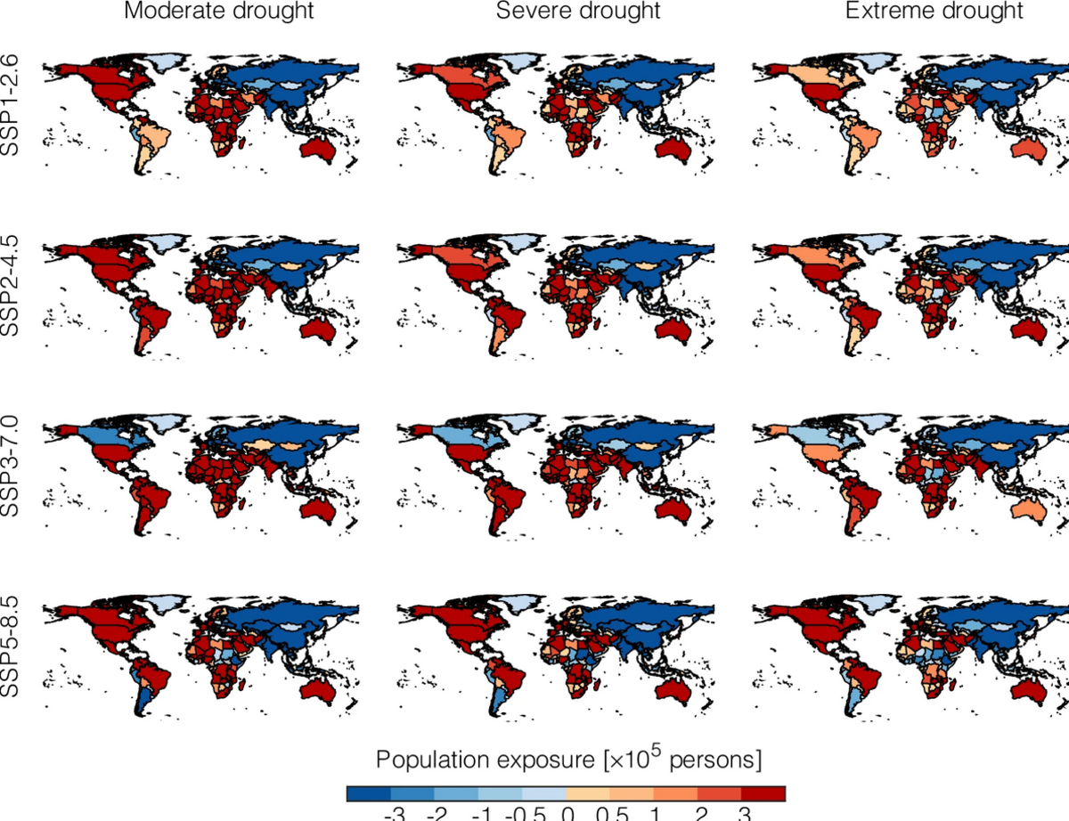 De auteurs combineerden grote klimaat- en hydrologische modelensembles met wereldwijde bevolkingsprognoses. Hittegolven, droogtes en gecombineerde hitte- en droogteperiodes zijn gekwantificeerd met behulp van 26 CMIP6 mondiale klimaatmodellen onder meerdere gedeelde sociaaleconomische trajecten (SSP's). De blootstelling aan overstromingen is beoordeeld met zeven mondiale hydrologische modellen uit het ISIMIP-project. Blootstelling is gedefinieerd als het product van de kans op een gebeurtenis en het aantal getroffen mensen, en de resultaten zijn gegroepeerd volgens de inkomenscategorieën van de Wereldbank.