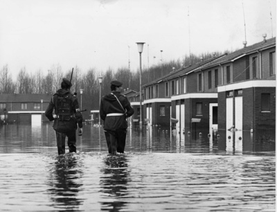 Overstroming in Lillo in het noorden van Antwerpen begin februari 1953.
