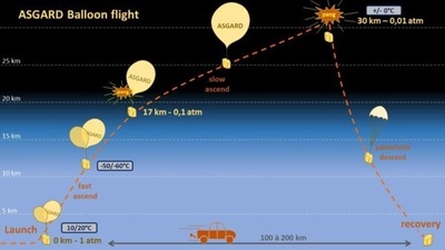 De ruimte lijkt ver weg, maar toch draait het internationale ruimtestation ISS op een hoogte van 400 km rond de aarde en begint de ruimte op een hoogte van 100 km. Een meteorologische ballon kan gemakkelijk een hoogte van minstens 30 km bereiken. Op die hoogte bevinden we ons al aan de rand van de ruimte: 99% van de atmosfeer bevindt zich onder ons, de lucht is volledig zwart, de aarde blauw en de horizon gebogen, waardoor de bolvorm van de aarde zichtbaar wordt. De ballon bereikt een omgeving die bijna luchtledig is en de experimenten vinden plaats in fysische omstandigheden die bijna identiek zijn aan die op het oppervlak van Mars.