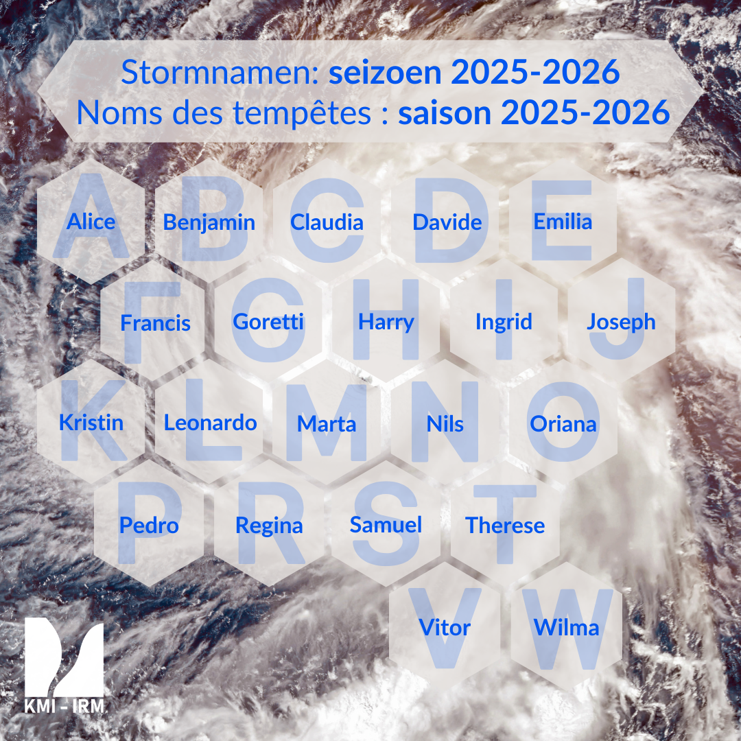 Elk jaar, bij het begin van de herfst, maken de Europese weerdiensten de lijst bekend met namen die toegekend zullen worden aan stormen die België en haar buurlanden mogelijk treffen. Voor het seizoen 2025–2026 is een nieuwe reeks namen gekozen om het publiek beter bewust te maken van gevaarlijke weersverschijnselen.