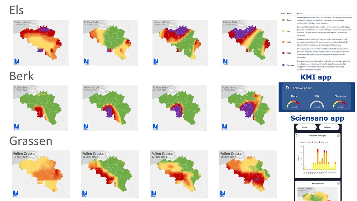 Het onderzoeksproject beoogde ook de ontwikkeling van een systeem om mensen te waarschuwen voor komende concentraties van pollen van berken en grassen. Dit is ondertussen al sinds 2023 beschikbaar via de website van het KMI en Sciensano.