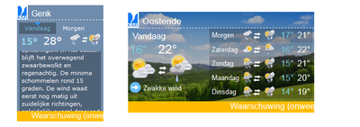 Wij hebben namelijk een widget gecreëerd, die erg eenvoudig te gebruiken is en waarmee u gratis de meest recente weersverwachtingen van het KMI op uw webstek kan plaatsen.
