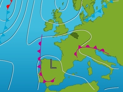 Op onderstaande weerkaarten bemerken we volgende symbolen: