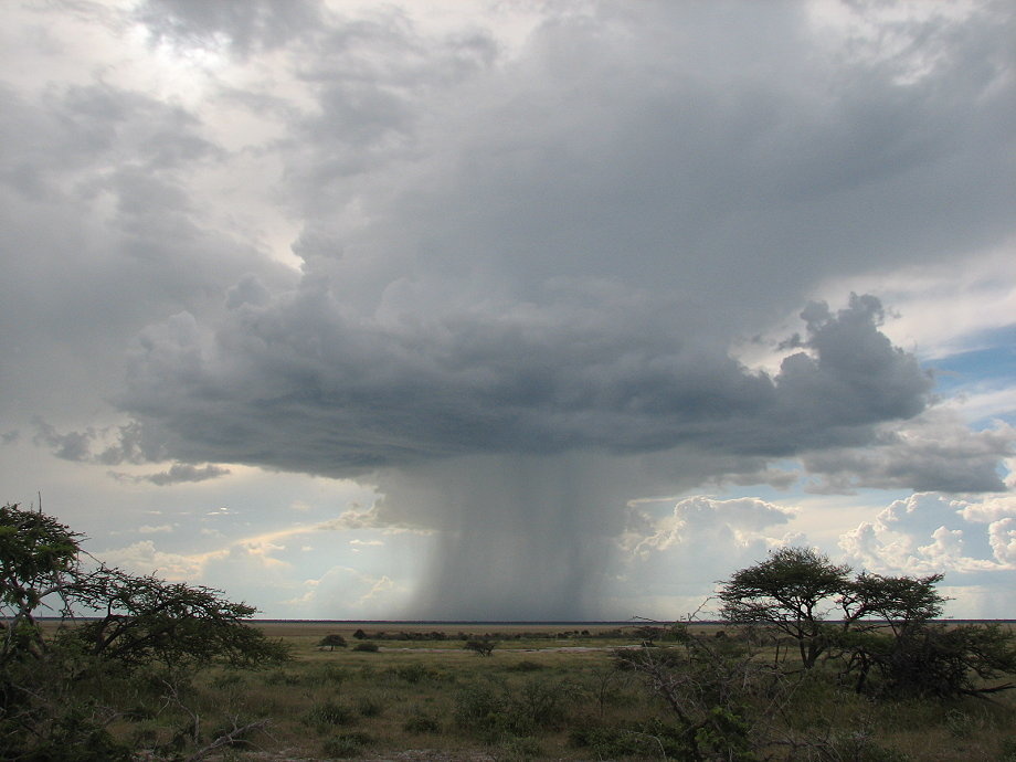 Een bui in de verte. Bij wisselvallig weer zijn er niet alleen stapelwolken maar ook droge perioden