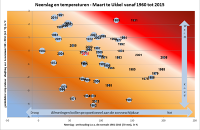 De eerste maand van de meteorologische lente werd te Ukkel gekenmerkt door normale waarden van de zonneschijnduur, de gemiddelde temperatuur, het neerslagtotaal en de gemiddelde windsnelheid.