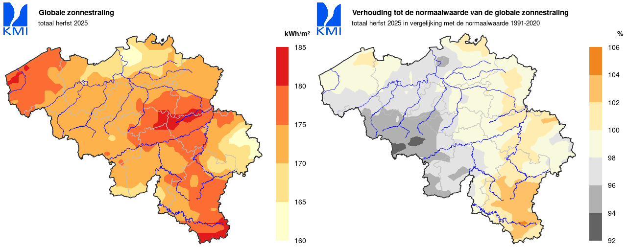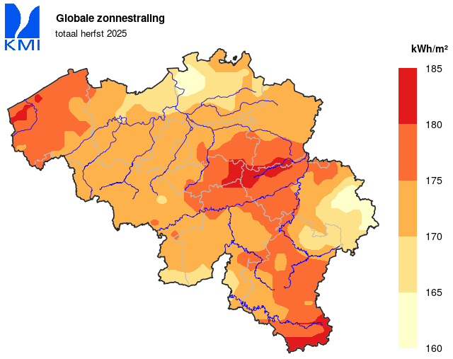 De herfst van 2025 was in zijn totaal duidelijk veel minder zonnig dan gemiddeld: 249u 34min (normaal: 332u 51 min).