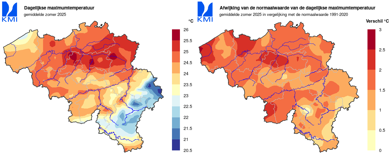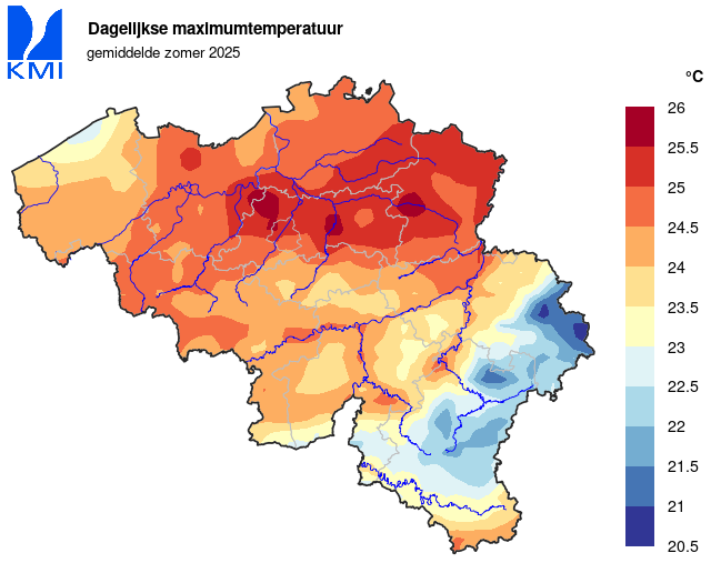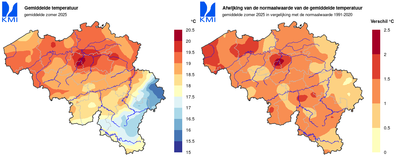 De gemiddelde temperatuur van de zomer van 2025 bedroeg te Ukkel 19,3°C (normaal 17,9°C). Daarmee is de zomer van 2025 de vierde warmste zomer sinds het begin van de metingen in 1833. Enkel de zomers van 2018 (19,9°C), 2003 (19,7°C) en 2022 (19,6°C) waren nog warmer.