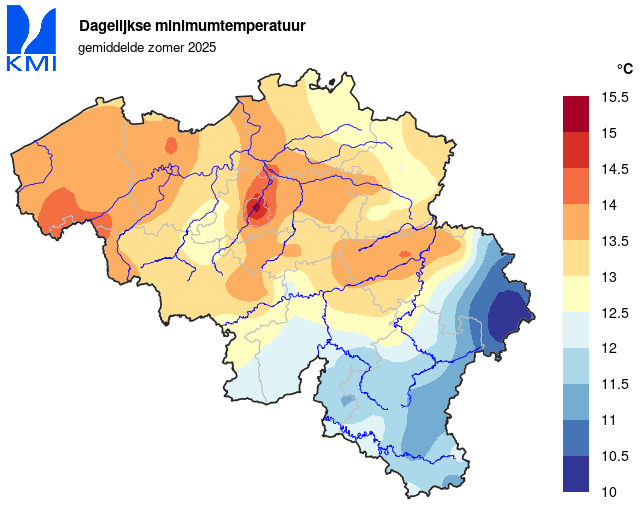 In ons land werd de hoogste temperatuur op 2 juli gemeten (38,3°C in Diepenbeek) en de laagste op 25 augustus (0,6°C in Elsenborn (Bütgenbach)).