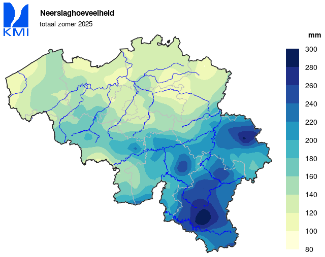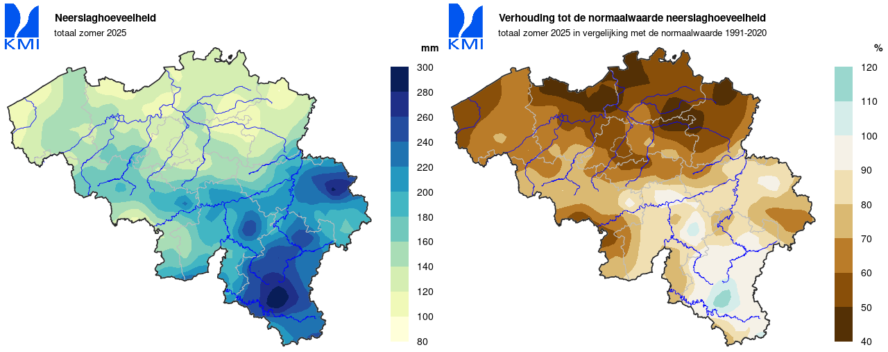 De droge zomer van 2025 volgt na de droogste lente van de huidige referentieperiode. Tijdens deze twee seizoenen samen viel er slechts 184,4 mm (normaal: 399,8 mm). Daarmee is de periode van 1 maart 2025 t.e.m. 31 augustus 2025 de droogste van de huidige referentieperiode en de 2de droogste sinds 1892. Dezelfde periode was enkel in 1921 droger (met slechts 133,5 mm neerslag).