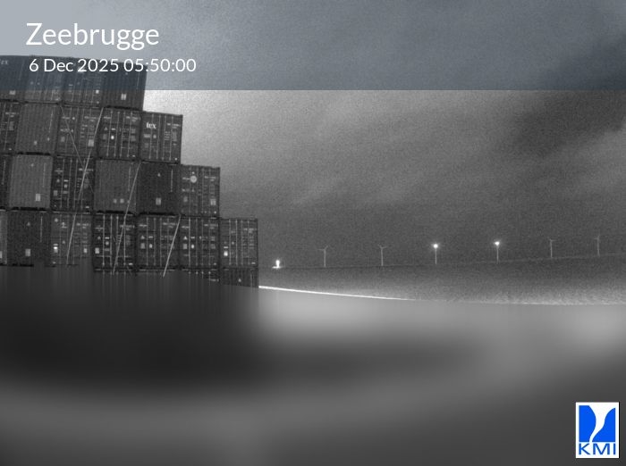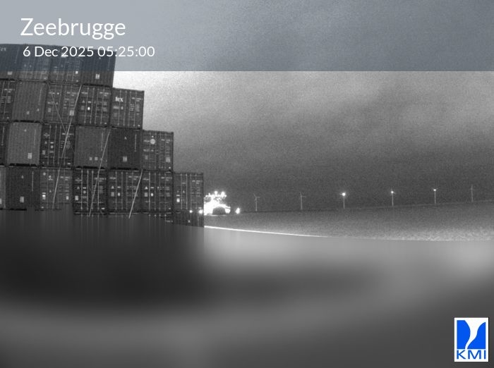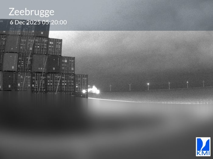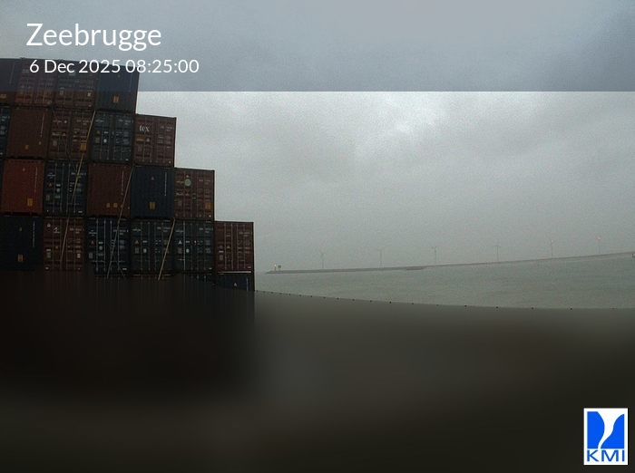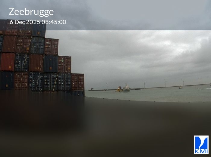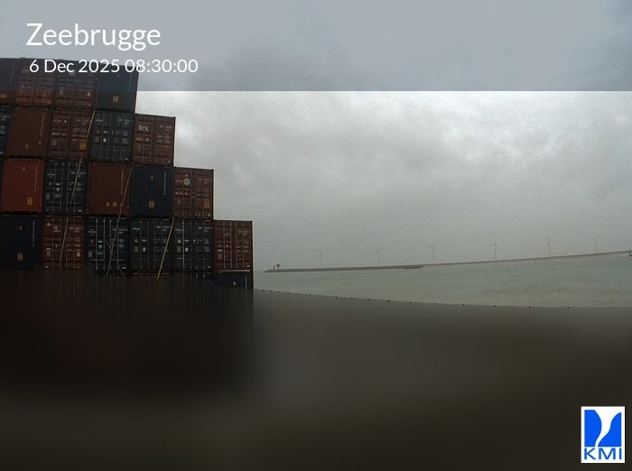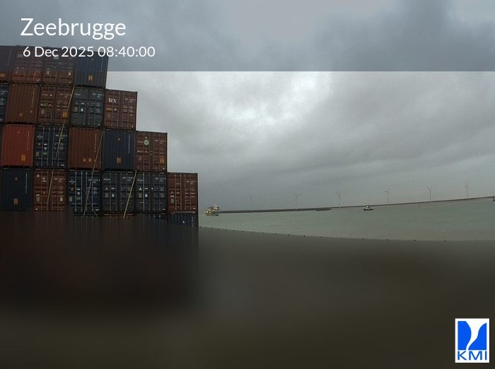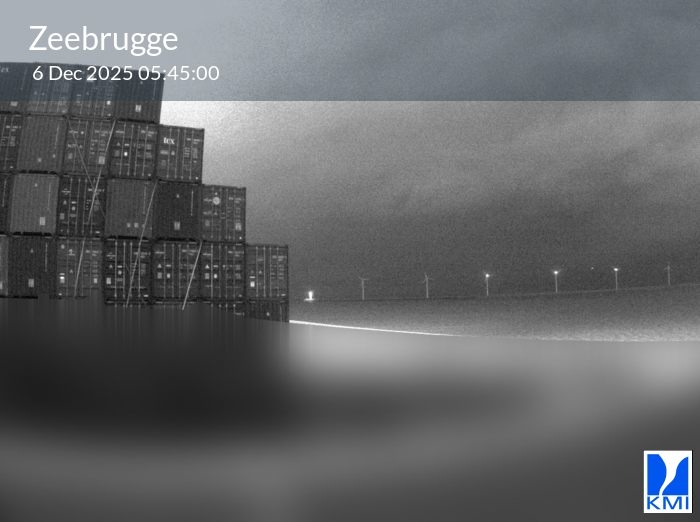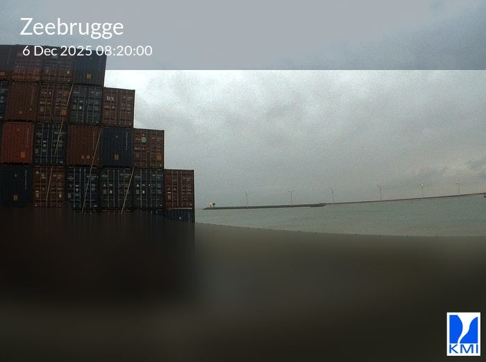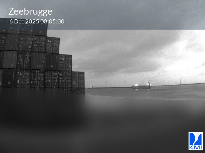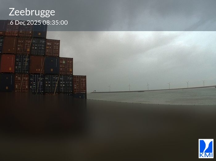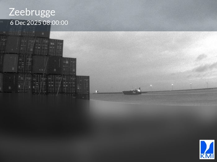 De webcam bevindt zich op de Leopold II-Dam in de haven van Zeebrugge aan de Belgische Kust en is naar het noorden gericht om het rechtstreekse zonlicht tijdens het middaguur te vermijden.