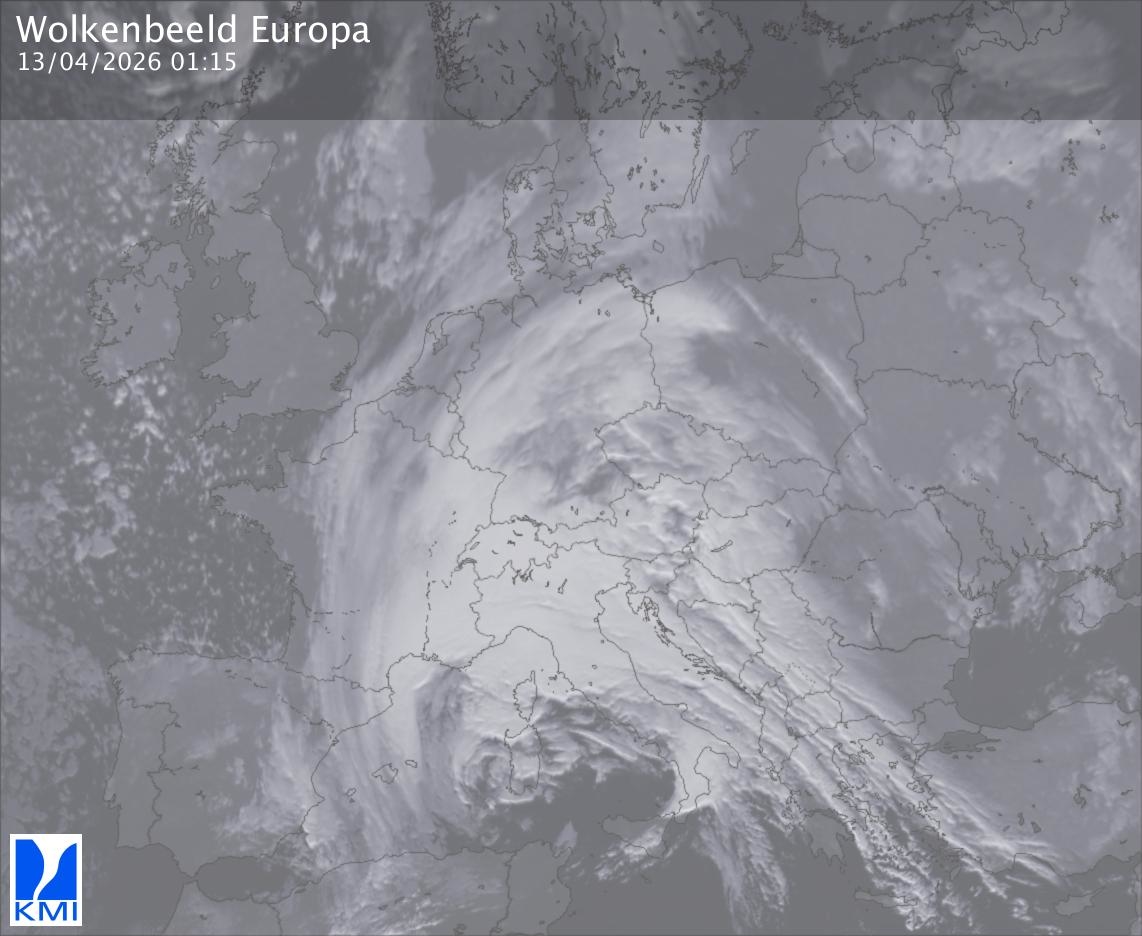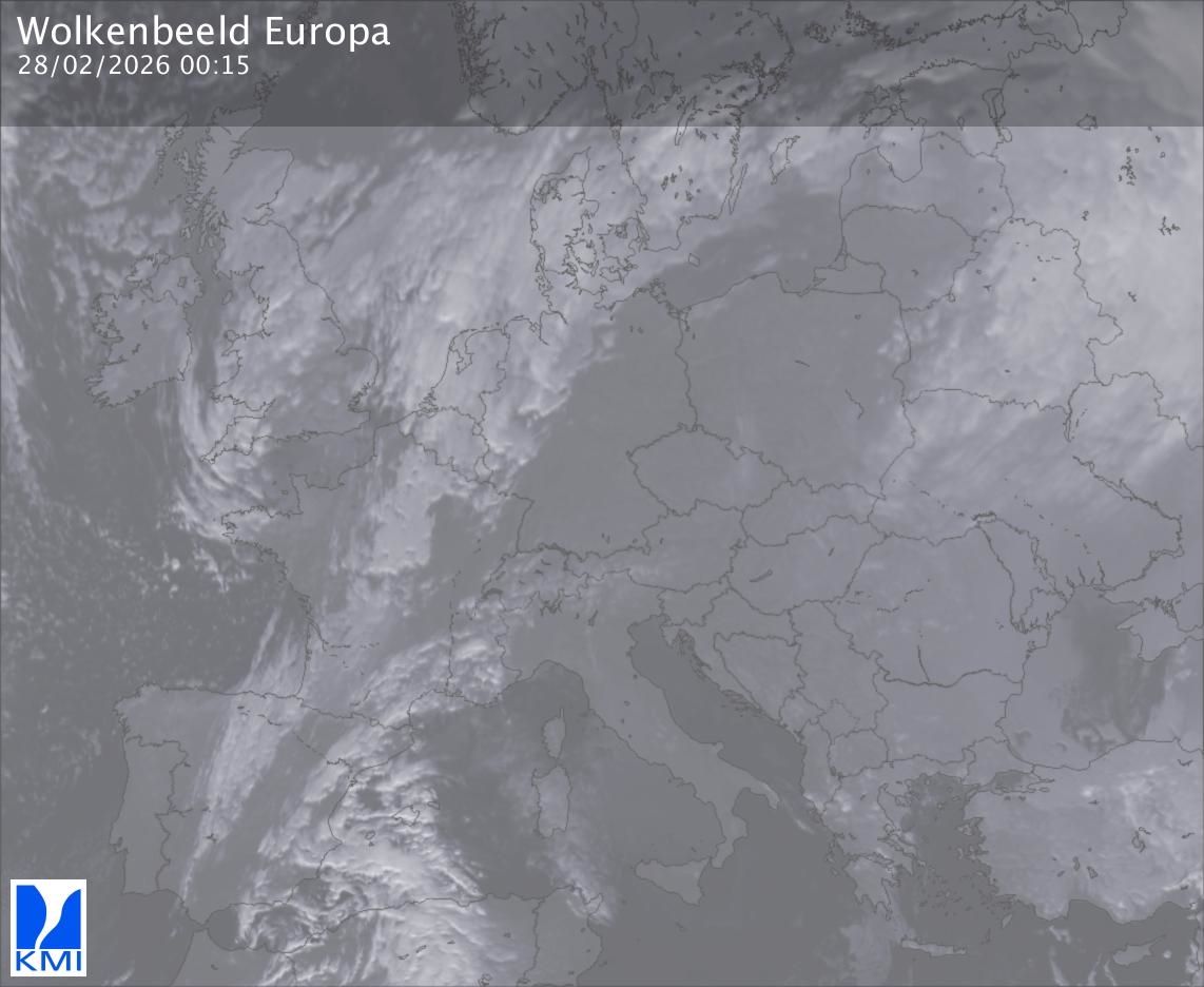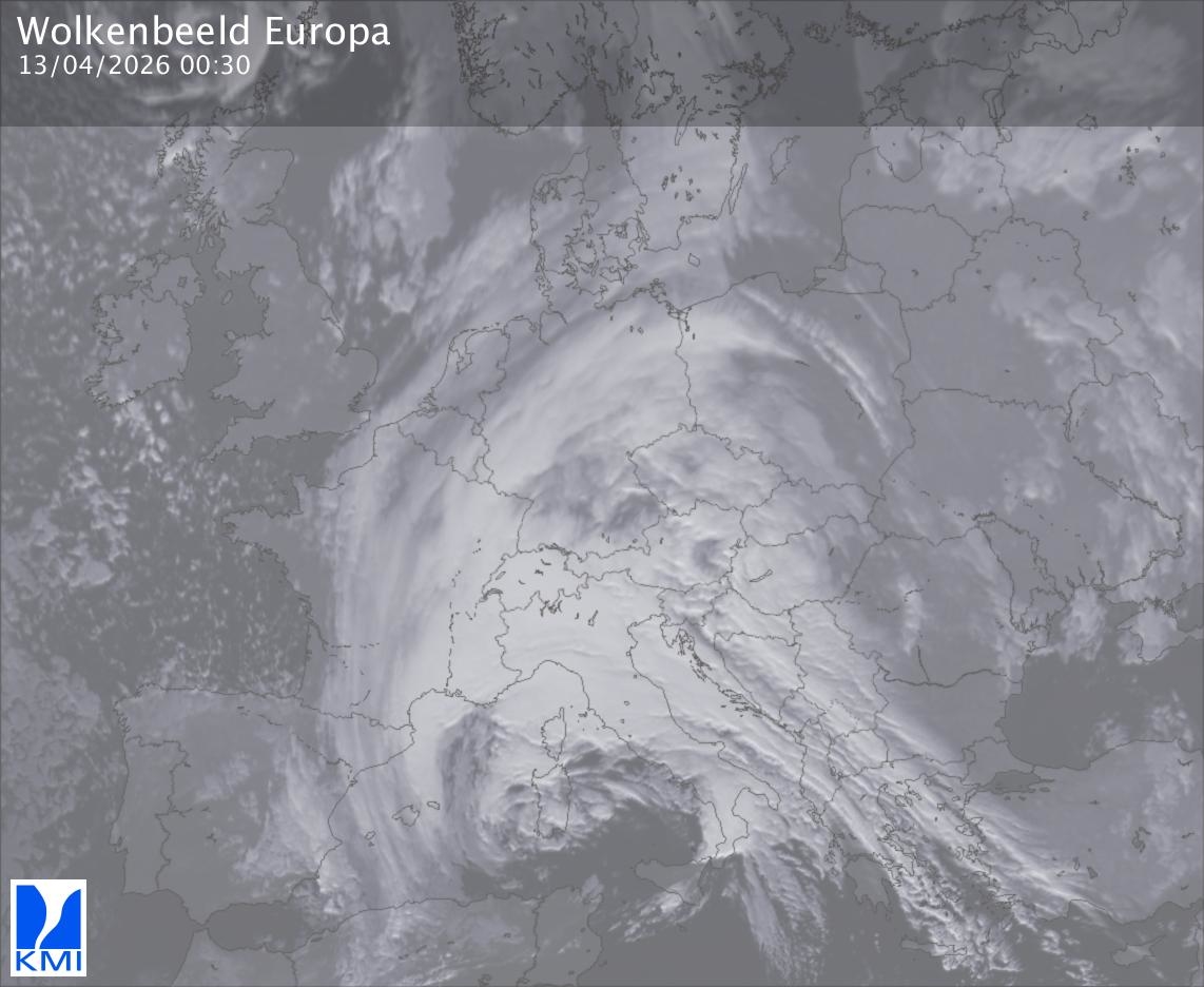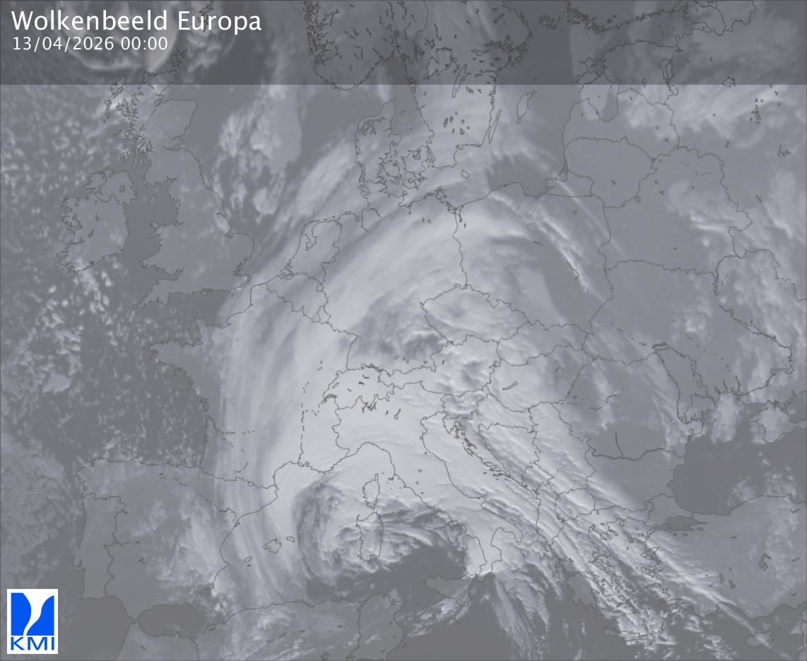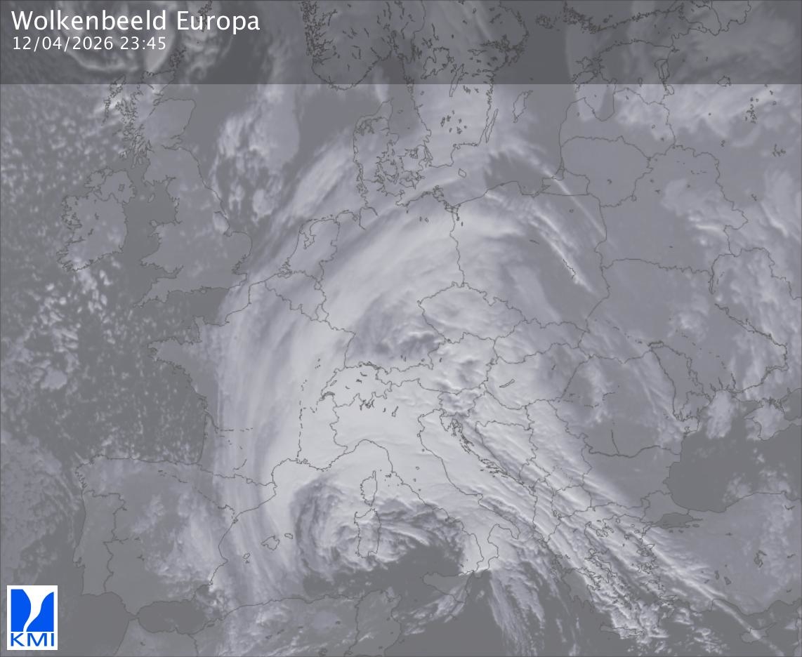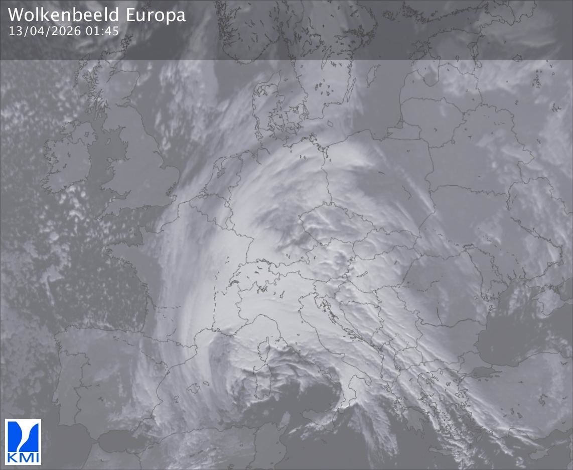 Wolkenbeelden van Europa: een combinatie uit het zichtbare (dag) en infrarode (nacht) spectrum.