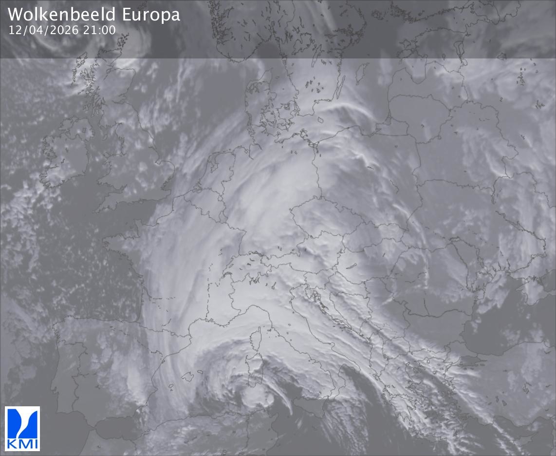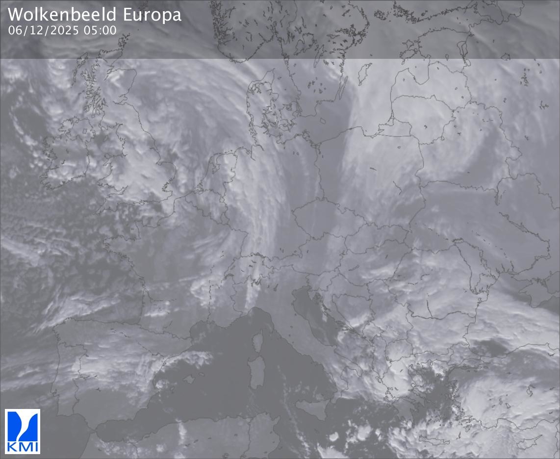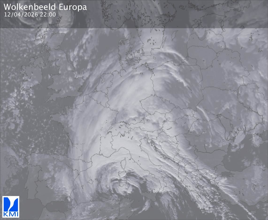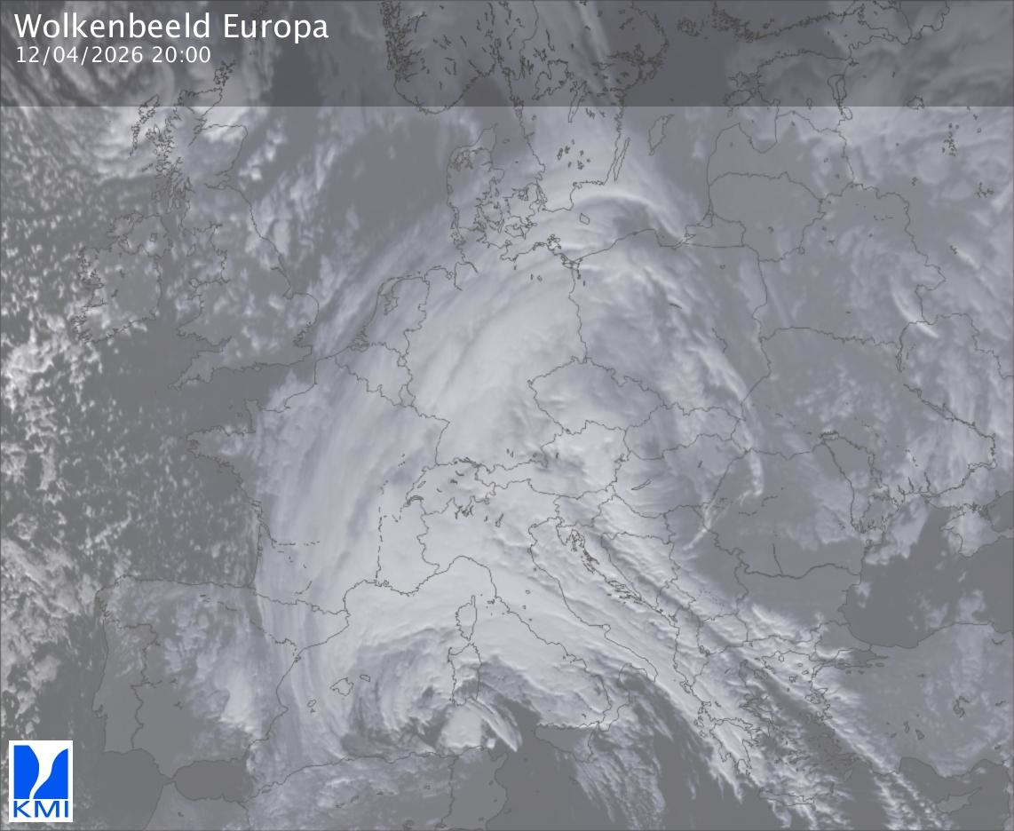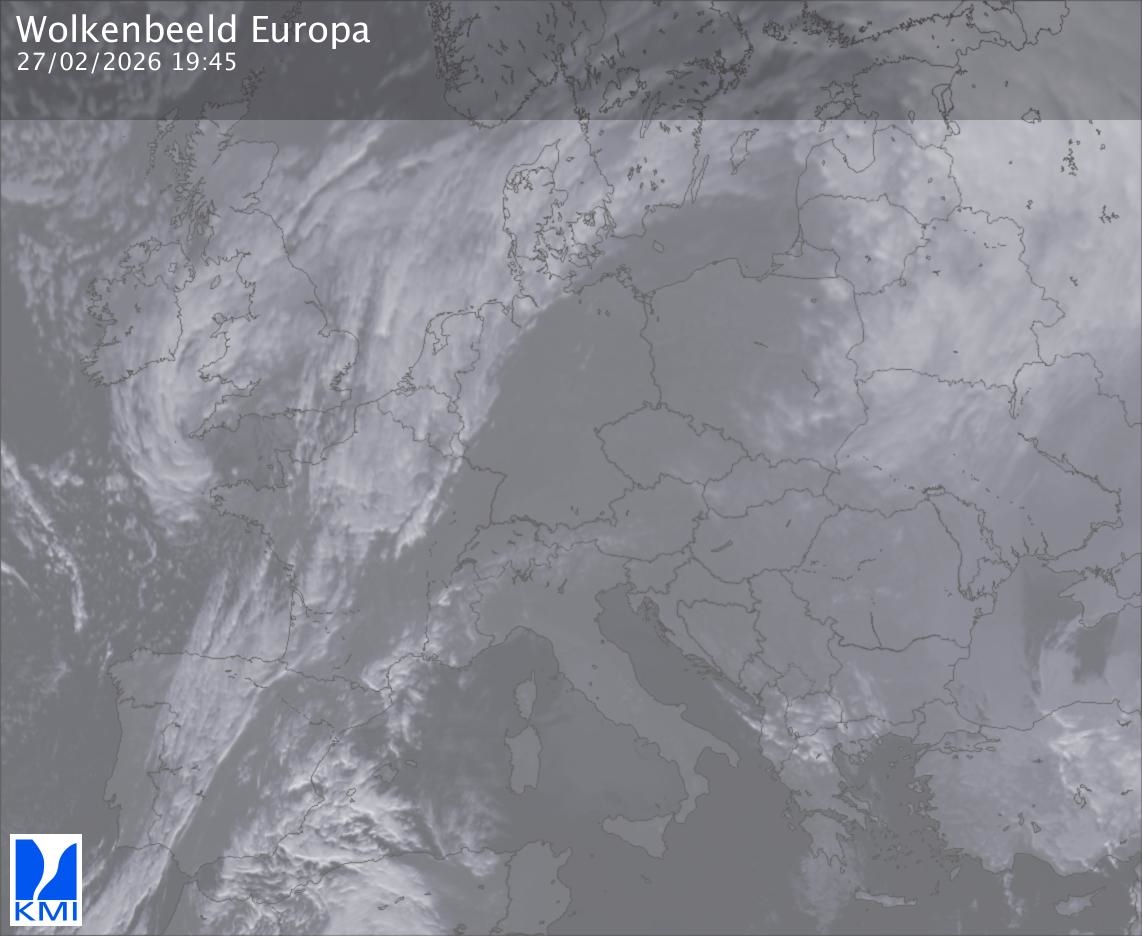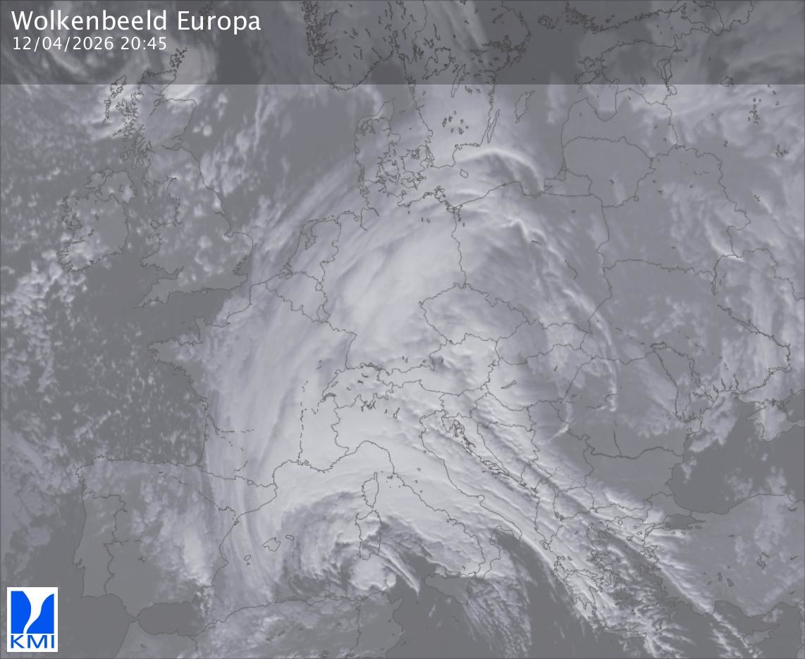 Wolkenbeelden van Europa: een combinatie uit het zichtbare (dag) en infrarode (nacht) spectrum.