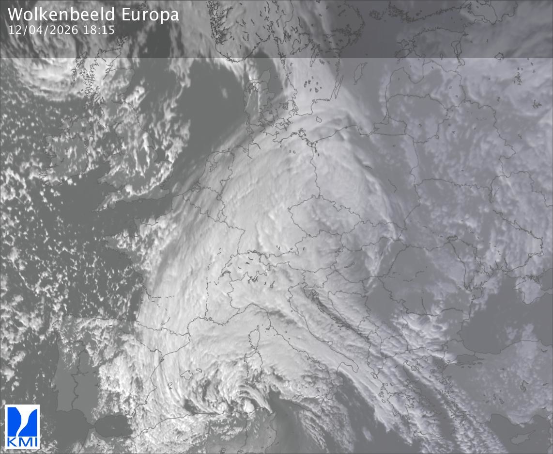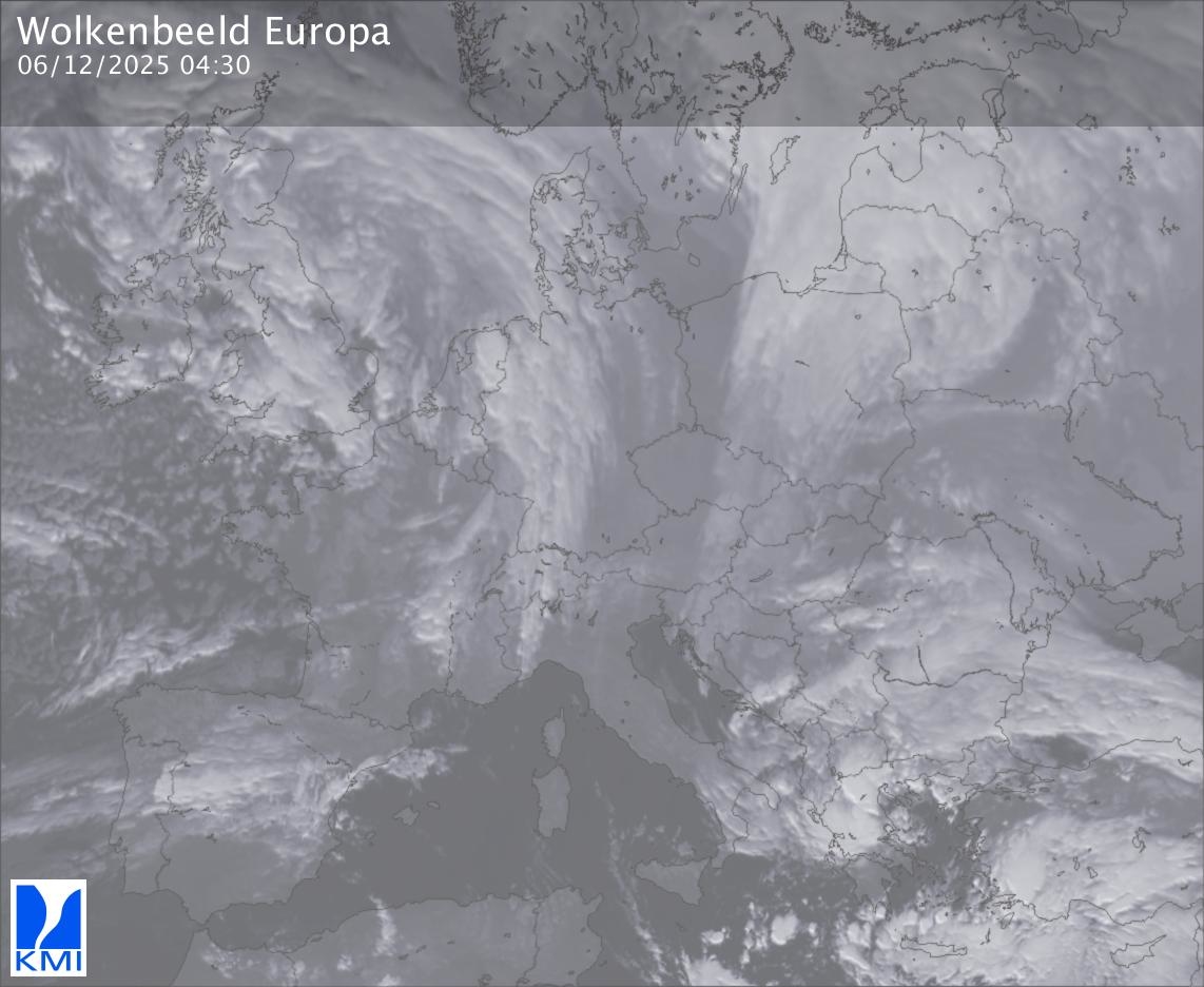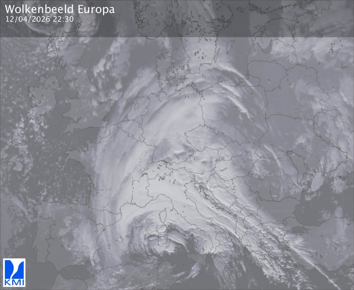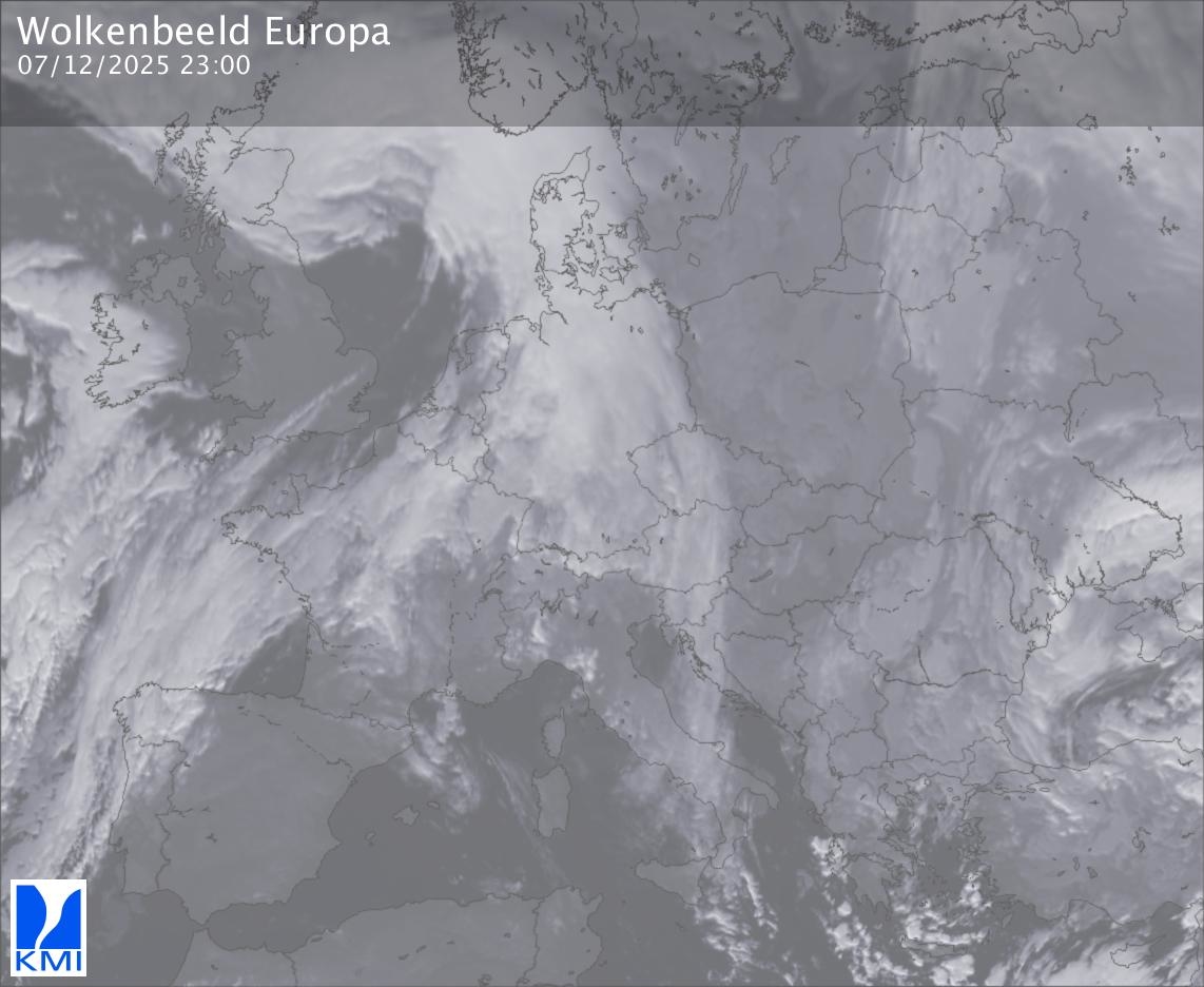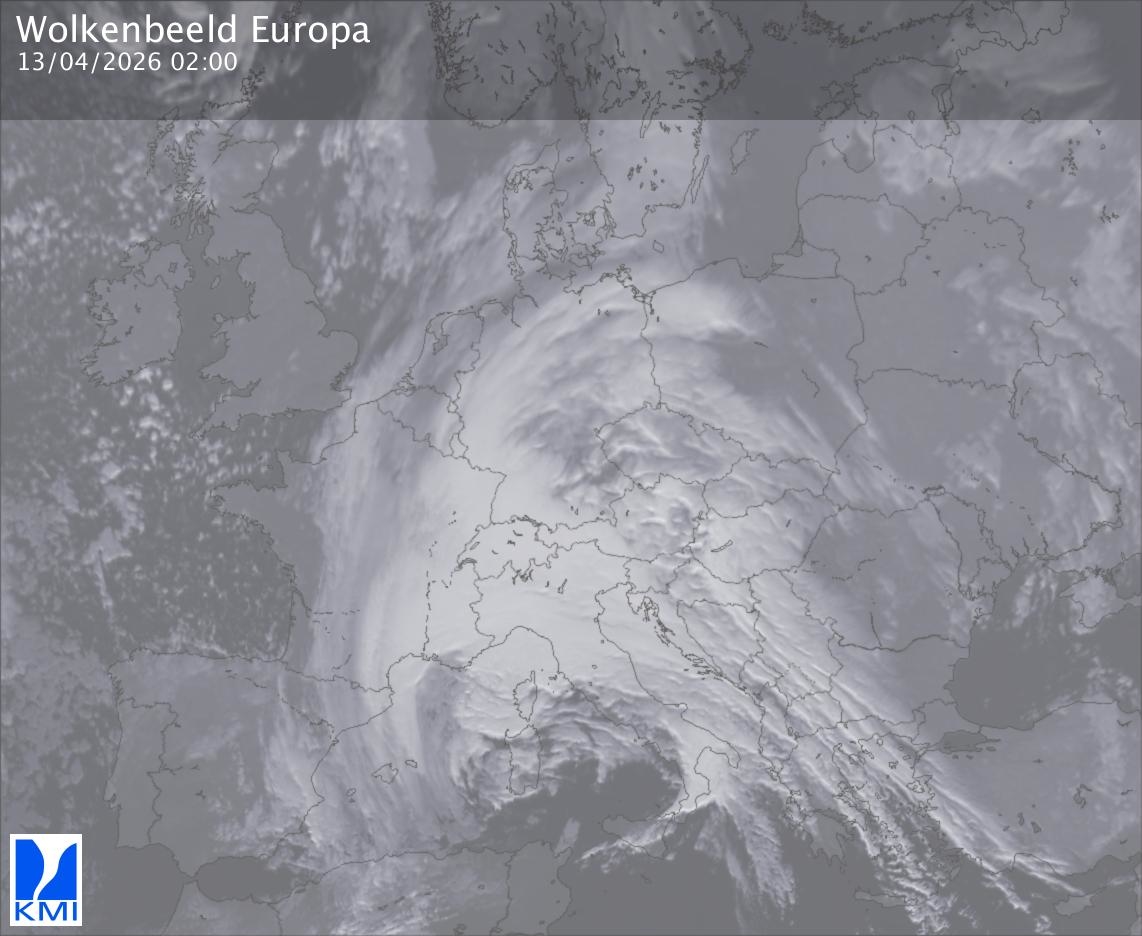 Wolkenbeelden van Europa: een combinatie uit het zichtbare (dag) en infrarode (nacht) spectrum.