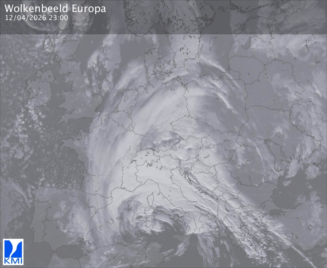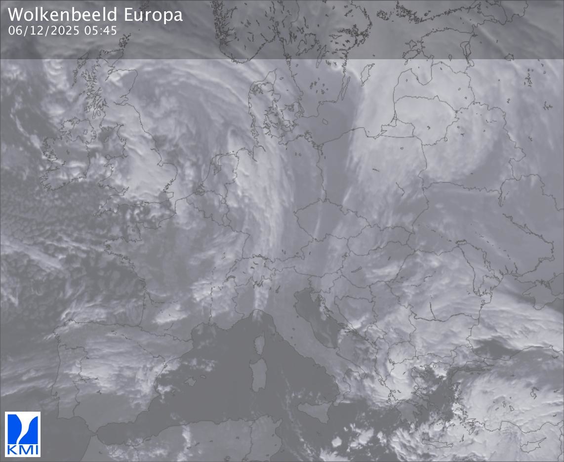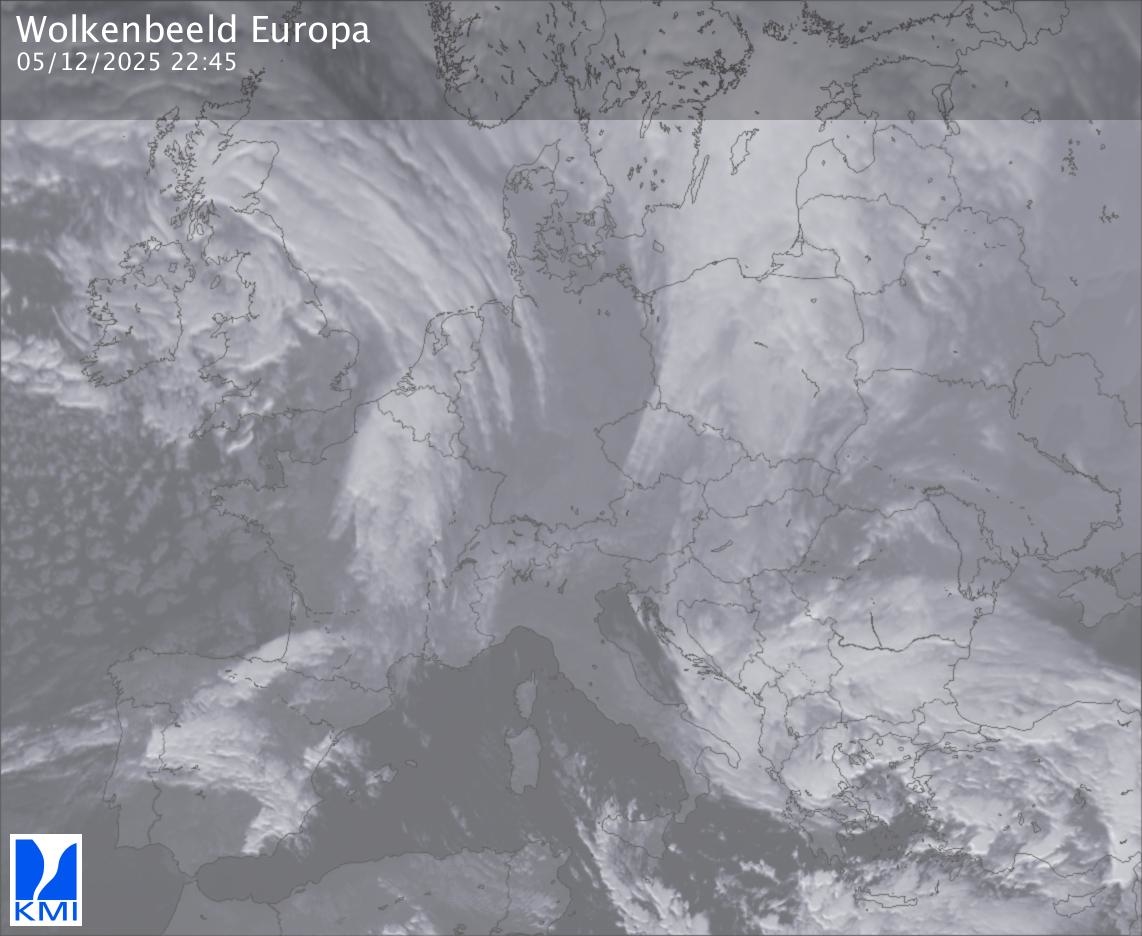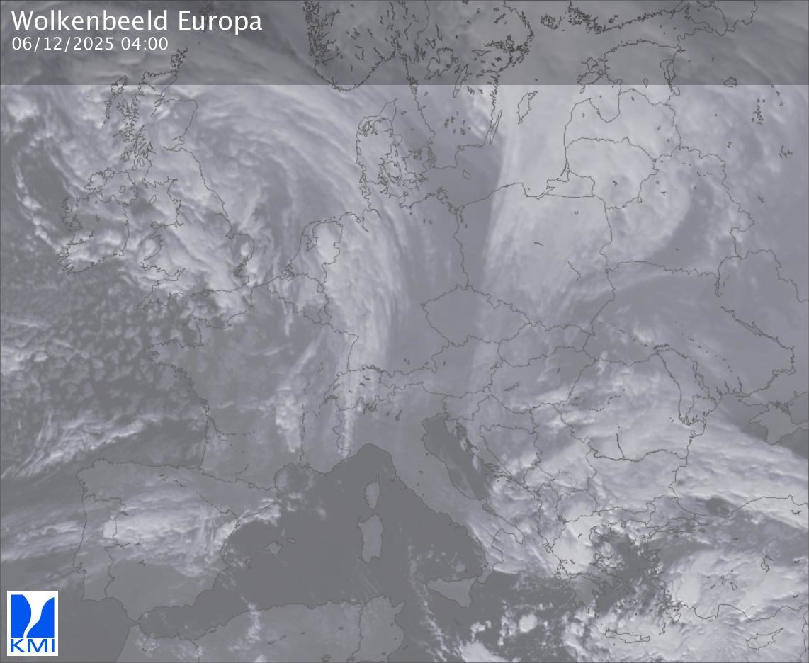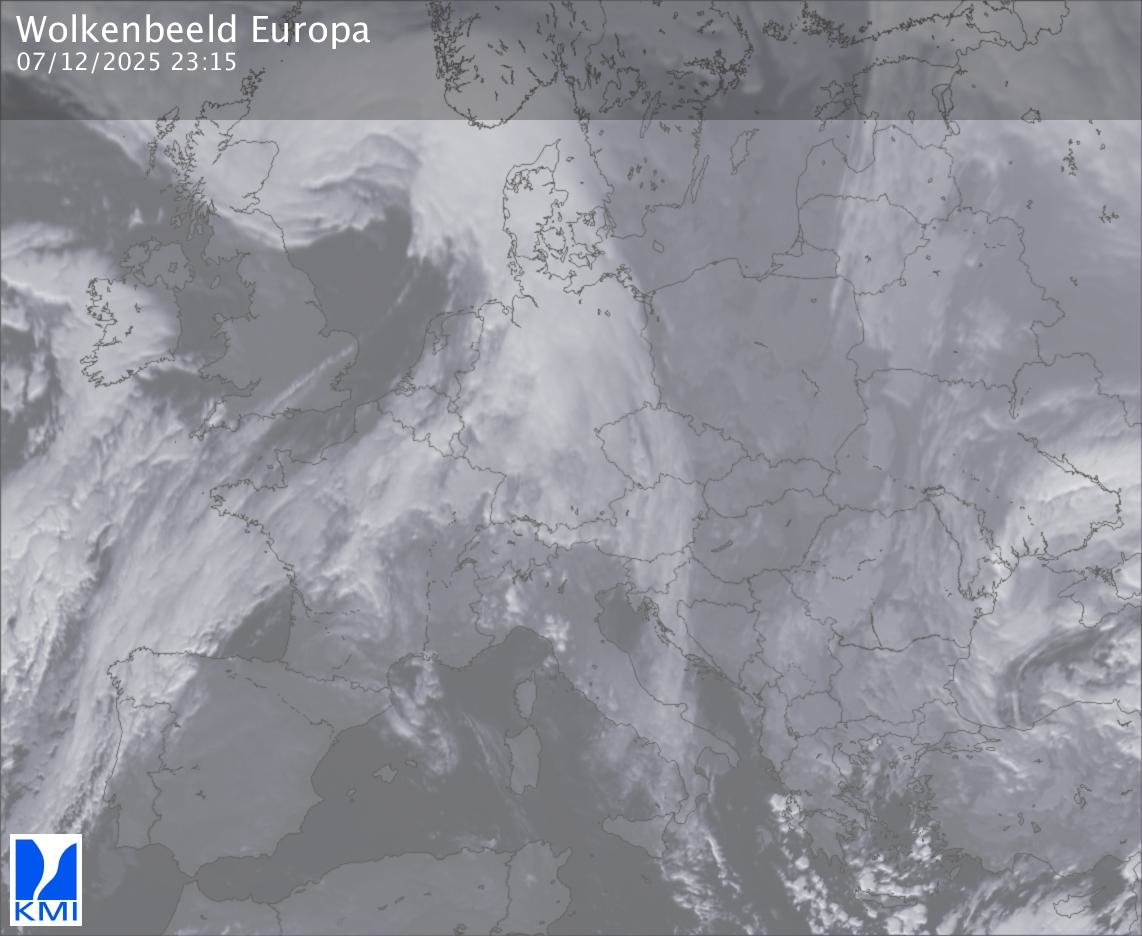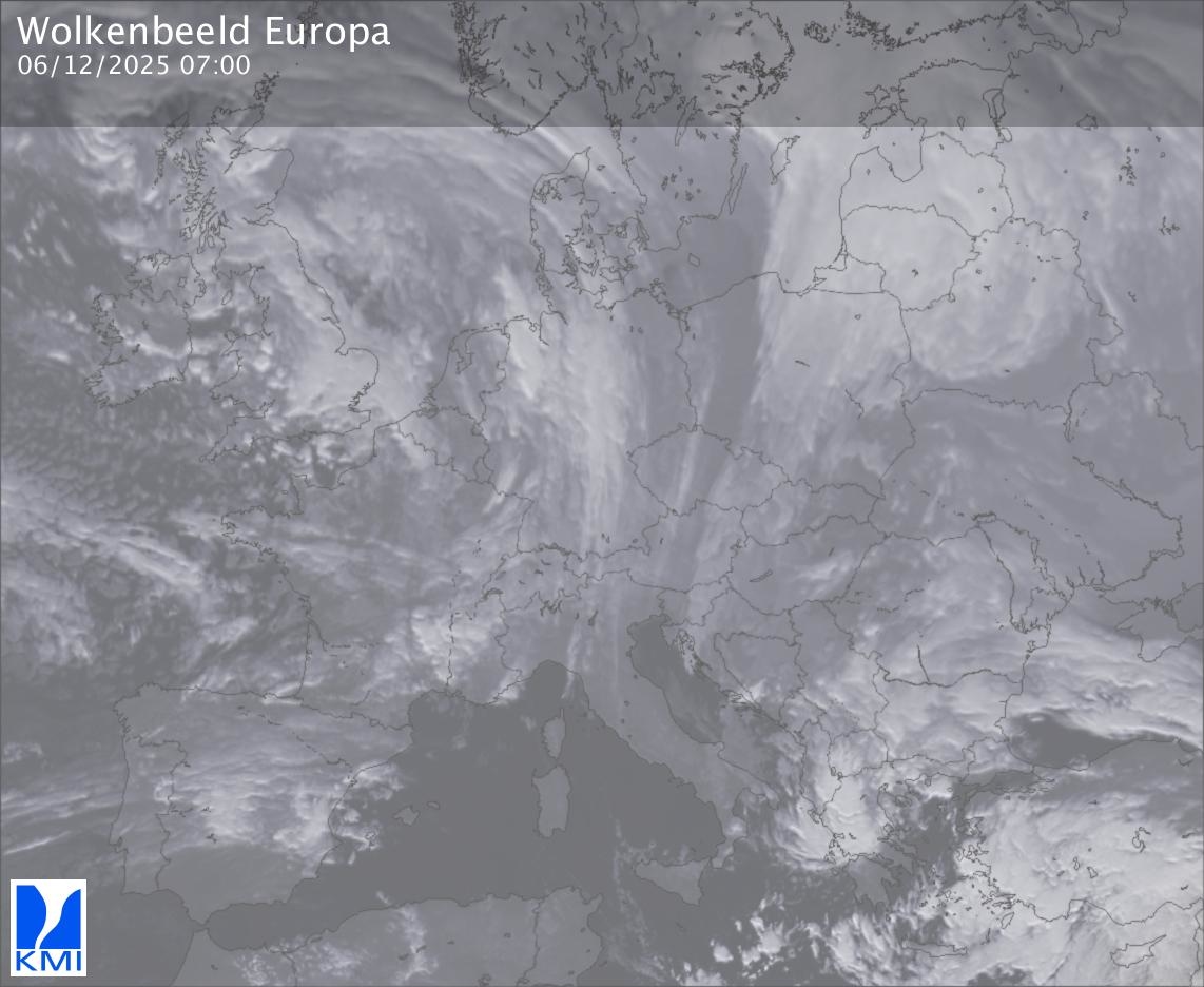 Wolkenbeelden van Europa: een combinatie uit het zichtbare (dag) en infrarode (nacht) spectrum.