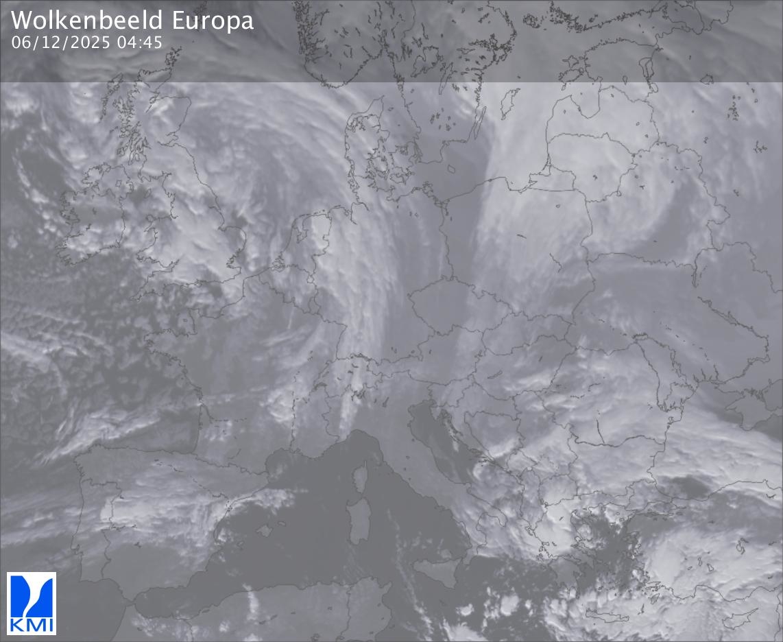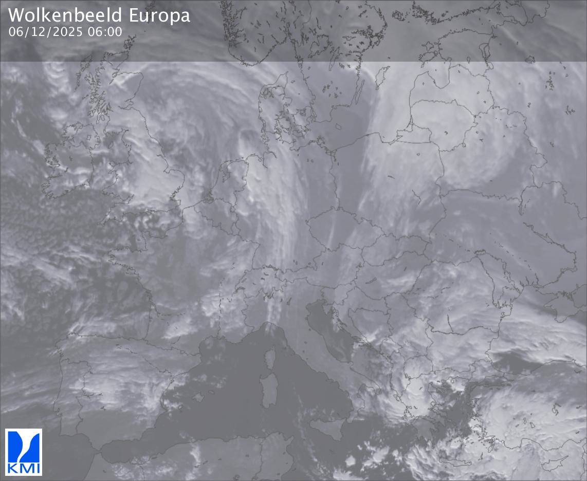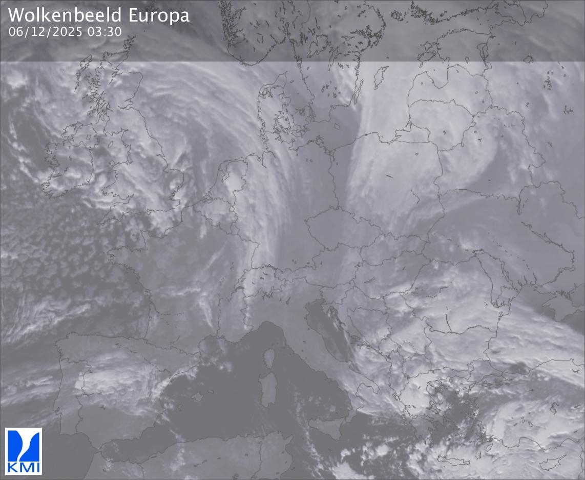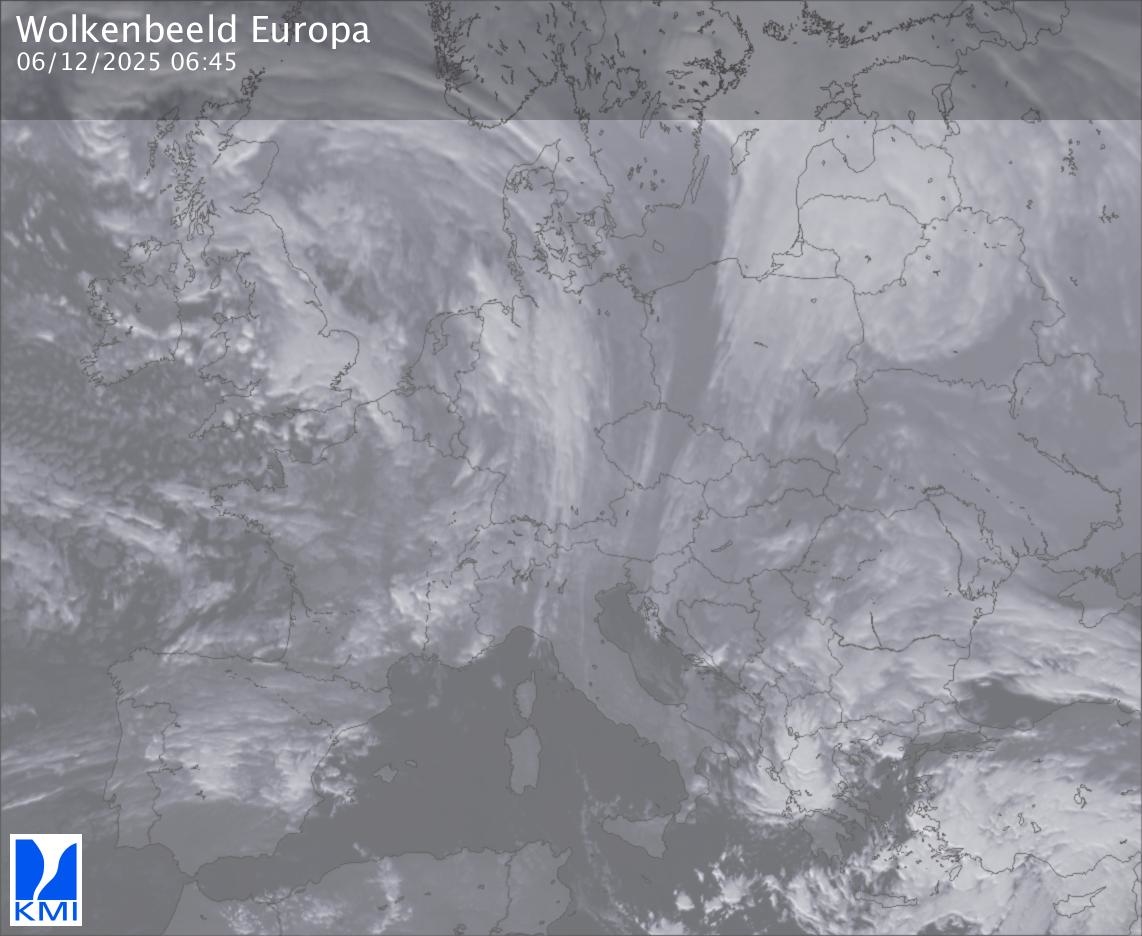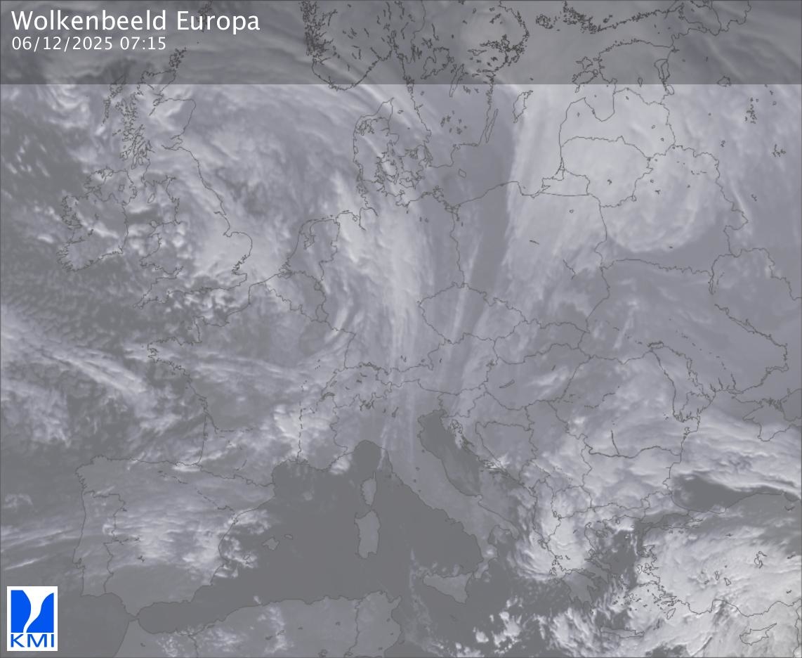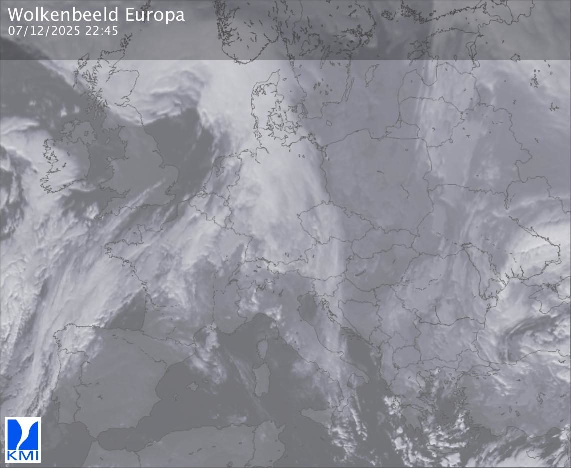 Wolkenbeelden van Europa: een combinatie uit het zichtbare (dag) en infrarode (nacht) spectrum.