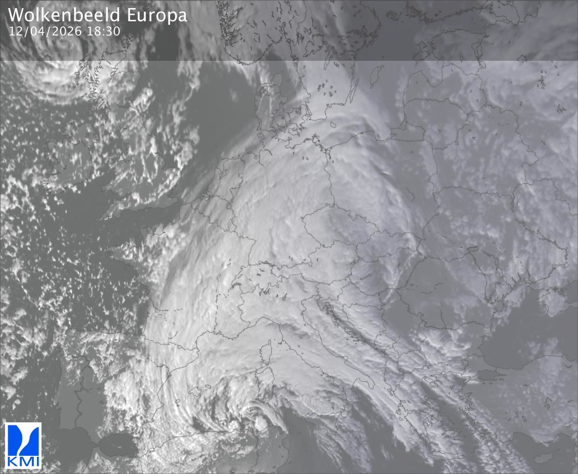 Hier ziet men wolkenbeelden die samengesteld worden door de satellietwaarnemingen uit het infrarode en het zichtbare golflengtebereik.